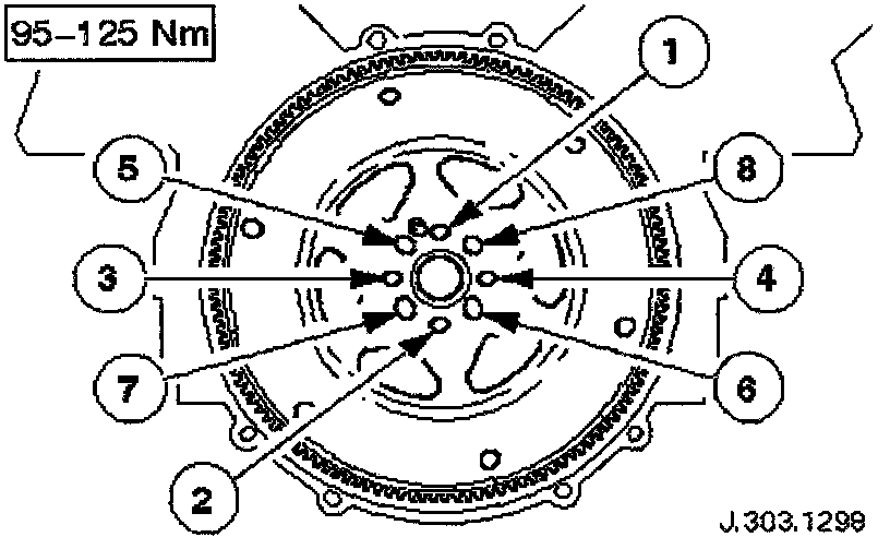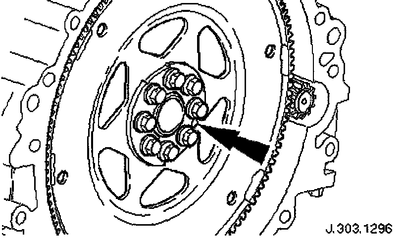 Install, but not tighten, the bolts which secure the drive plate to the crankshaft.