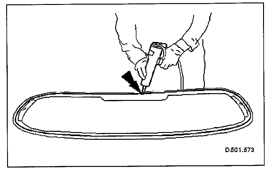 11 Apply masking tape around rear window aperture up to glass edge to protect top and liner.