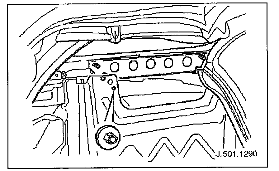 8. Slacken and remove nuts securing squab panel stiffener bracket to BIW and remove bracket from vehicle.