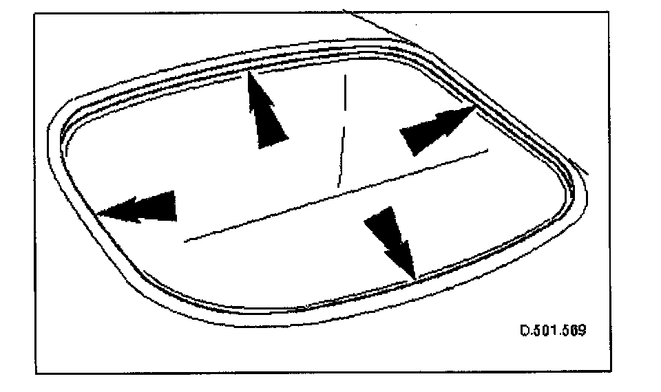 1. Fit and fully seat new rubber seal to rear window ensuring that joint is at bottom and central on glass.