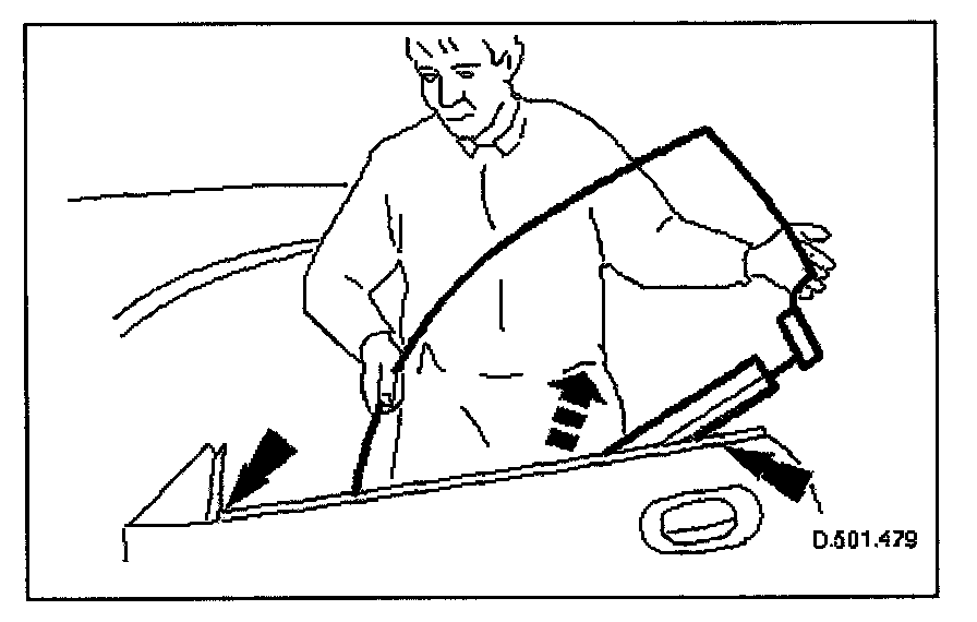 19. Lift glass upwards, tilt rear end outwards pass upwards between top adjuster screws and remove glass from door.