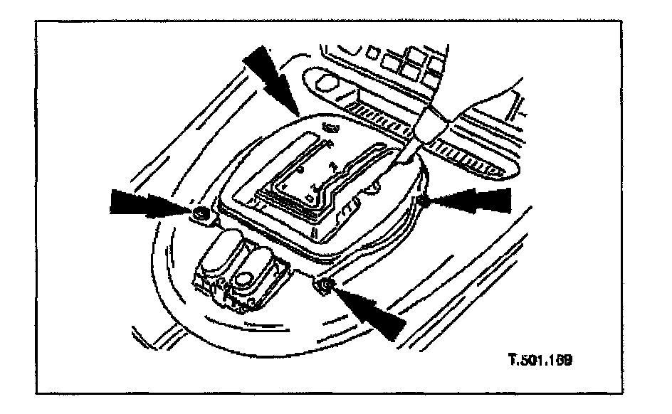 4. Slacken and remove the four center console veneer panel securing screws and remove the mounting plates.