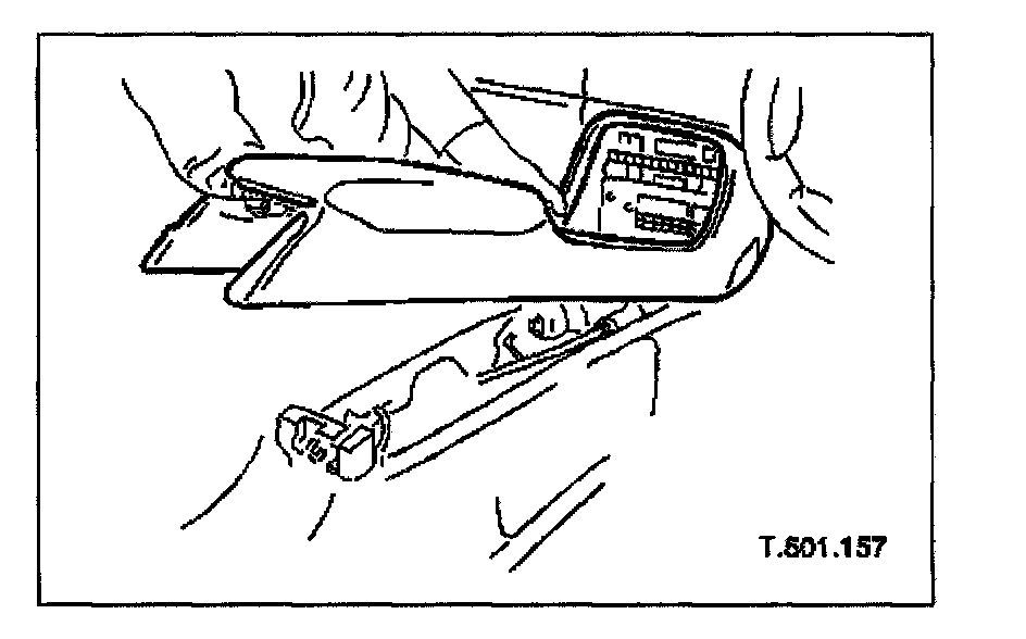 8. Position console for access, disconnect cigar lighter and valet switch harness multiplugs, lift console clear of 'J' gate and remove from vehicle.