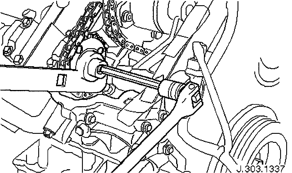 Protect the upper face of the timing cover from scratches, when removing the bolt which secures the sprocket.