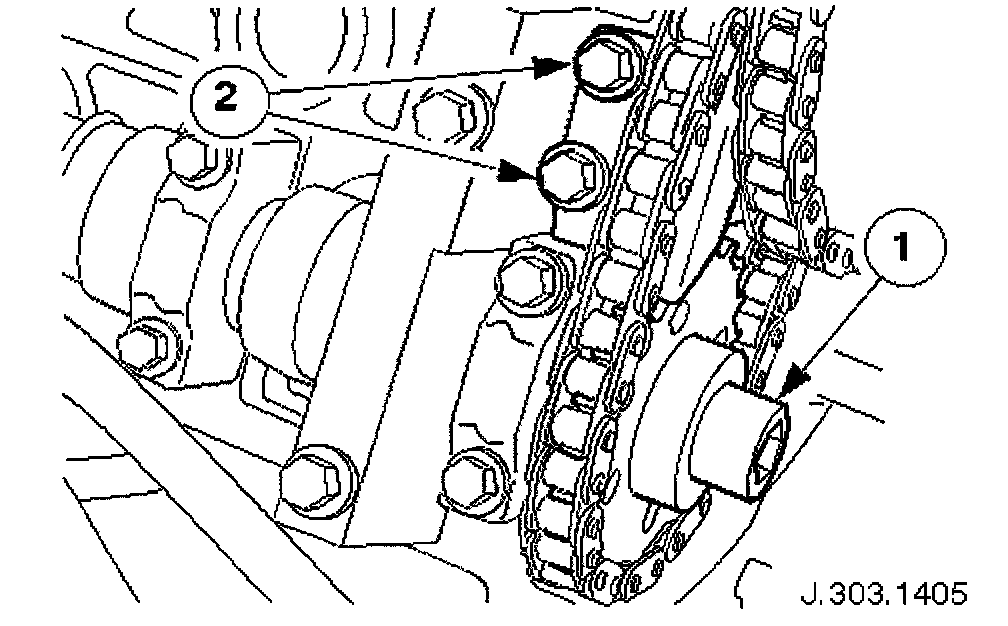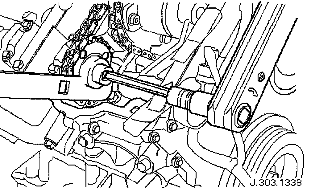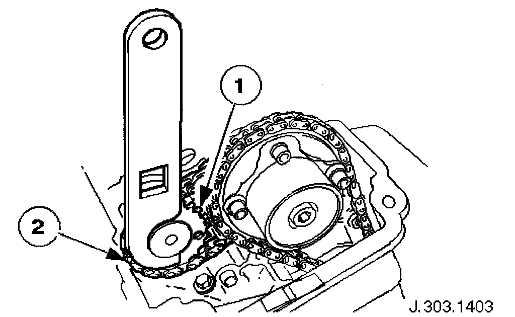 Adjust the position of the sprocket within the chain to allow the chain tensioning tool 303-532 to be approximately vertical, as shown.