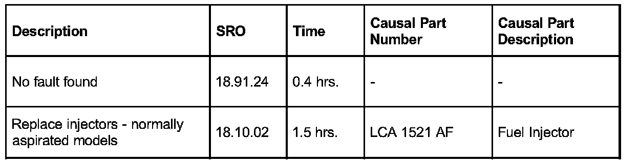 Warranty claims should be submitted quoting the information found in the table. This will result in payment of the stated time and, where applicable parts/miscellaneous expense codes as listed.