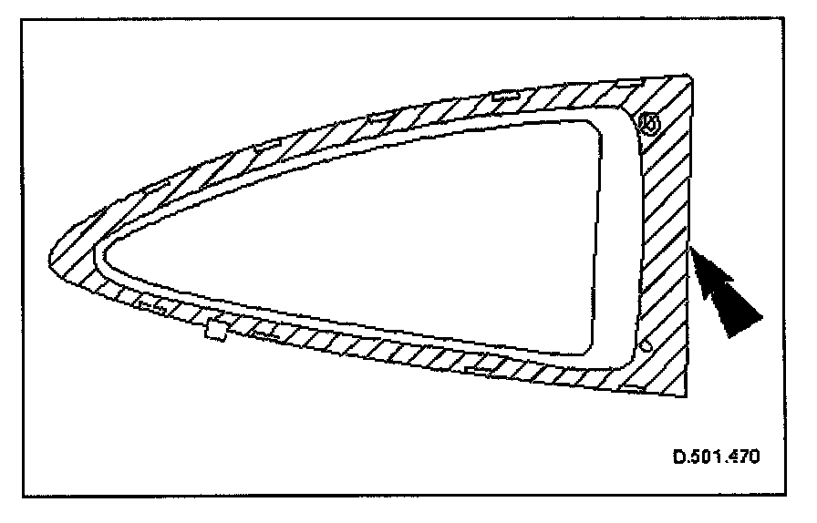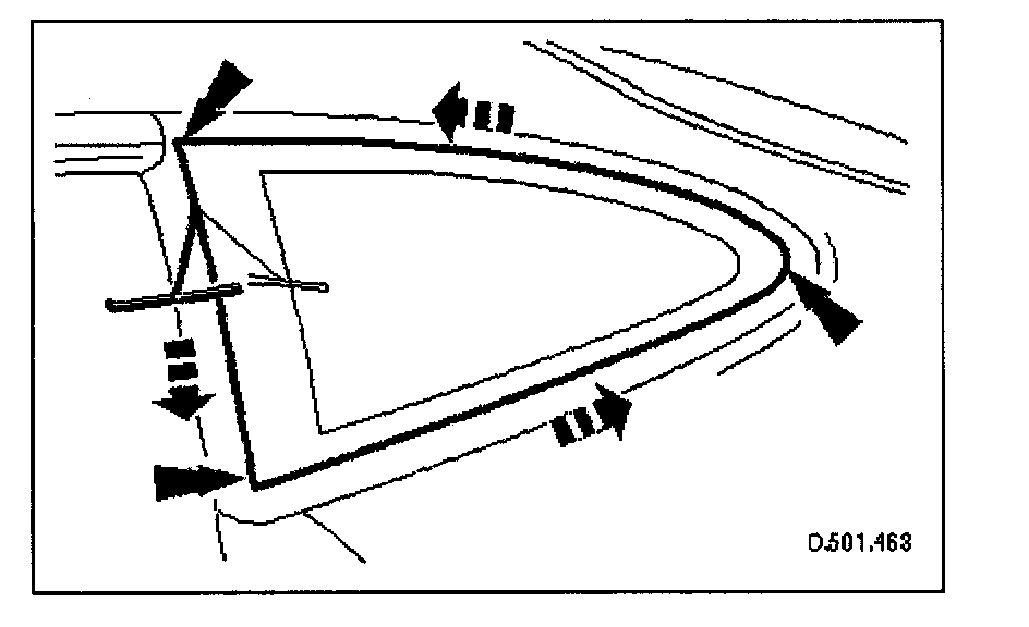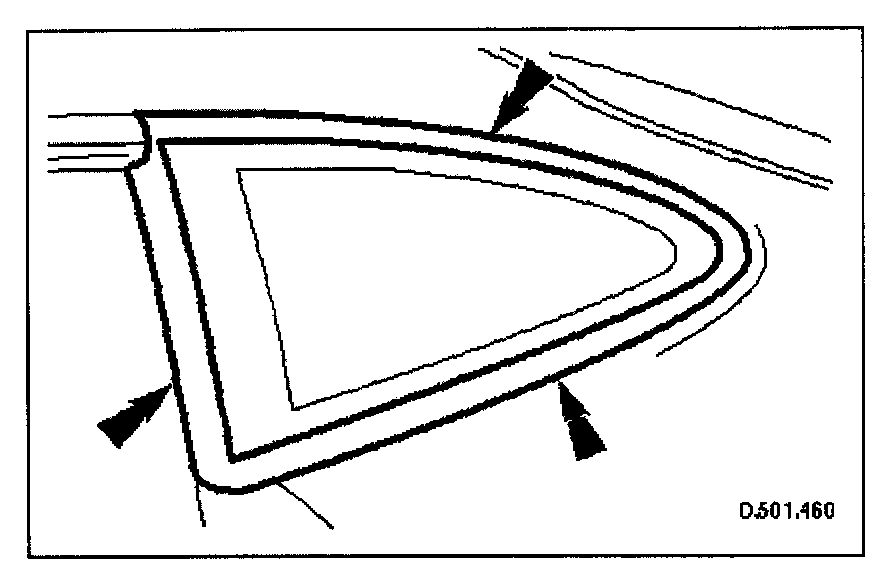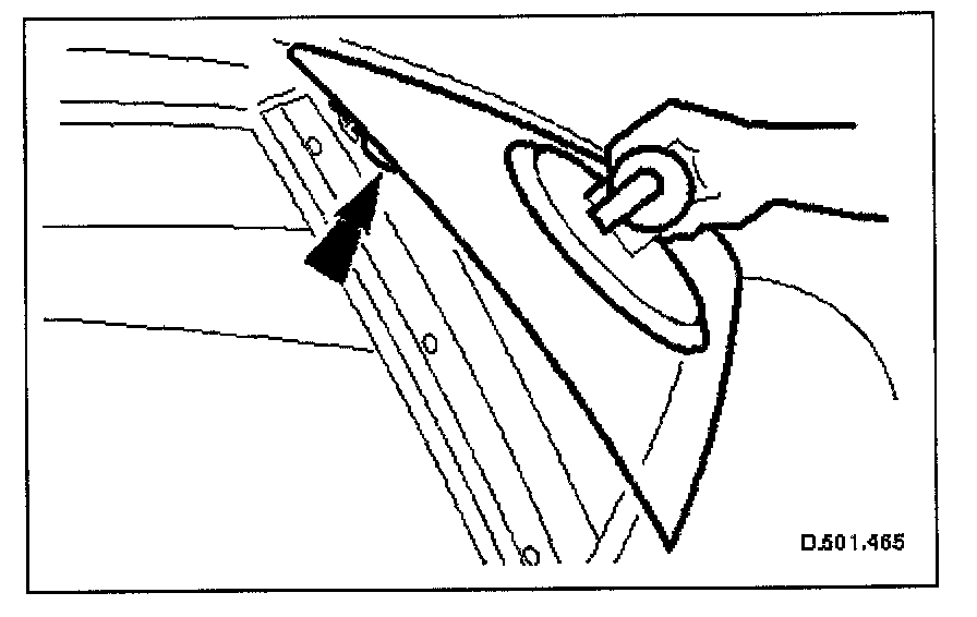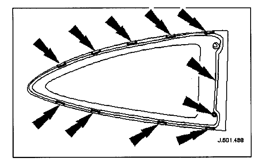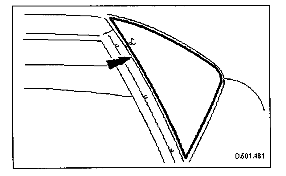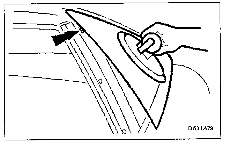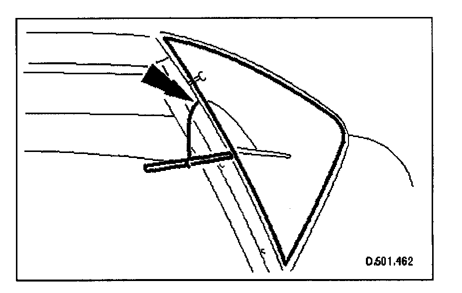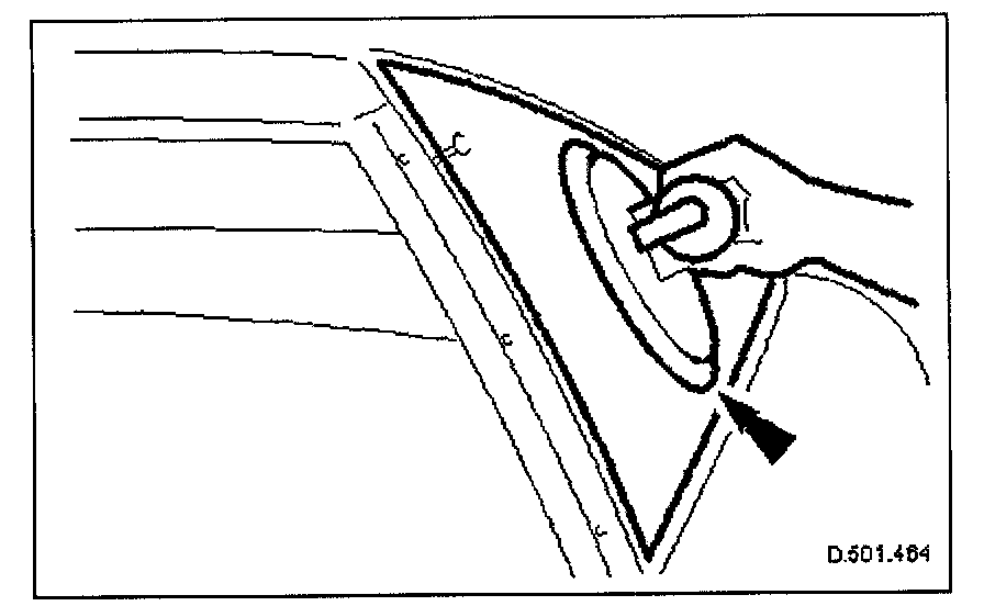 11. With assistance, use cheese wire to cut around the glass moving downwards then rearwards and exercising care to avoid damaging paintwork at the corners.