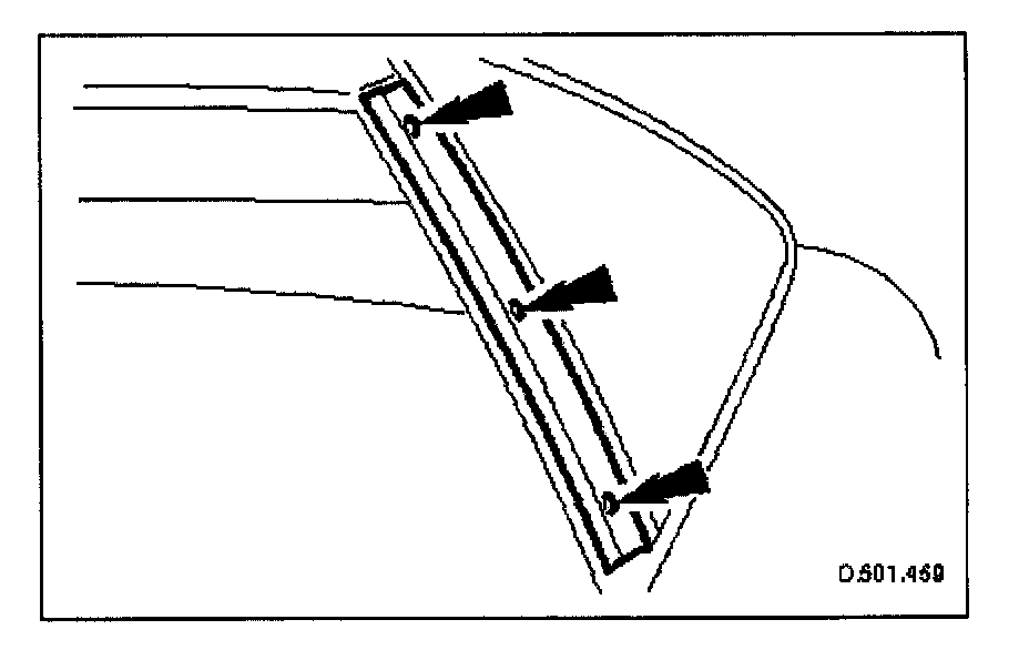 6. Slacken and remove three screws securing B post seal carrier to B post and remove carrier.
