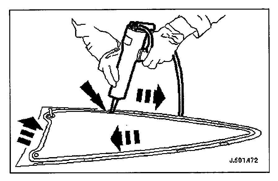 NOTE: Penetrating the seal in the wrong position can result in contact with the glass to body mounting stud.