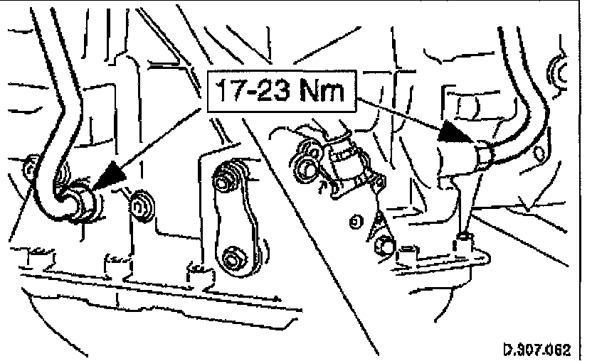 8. Fit the engine rear mounting and tighten the center bolt and outer bolts to the specified torque figures.