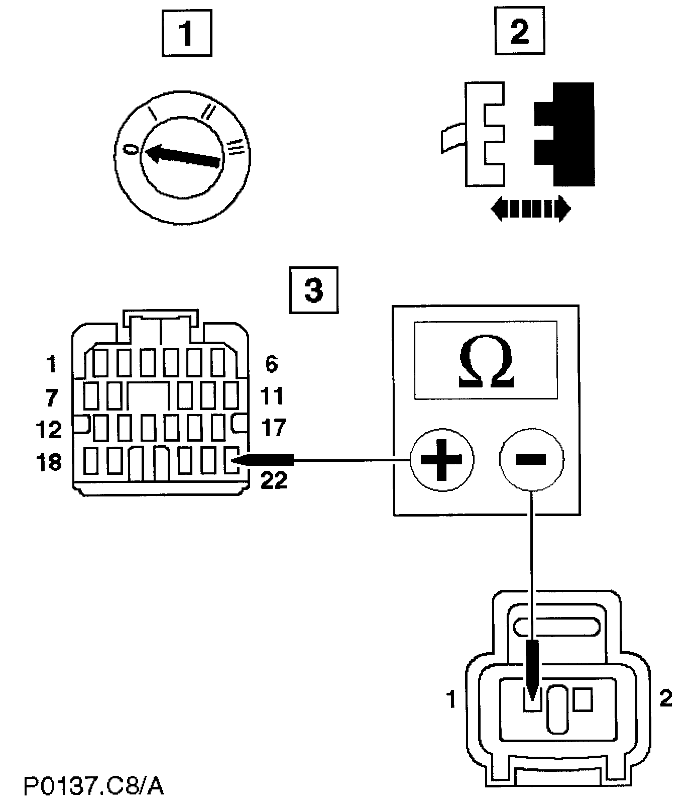 With EM012 and EM022 disconnected, measure the resistance between EM012/022 and EM022/001.