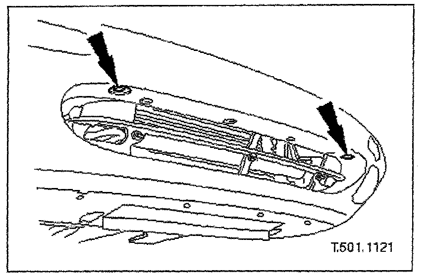 11. Carefully withdraw bumper casing and beam assembly forward to clear guide blocks and remove assembly from vehicle.