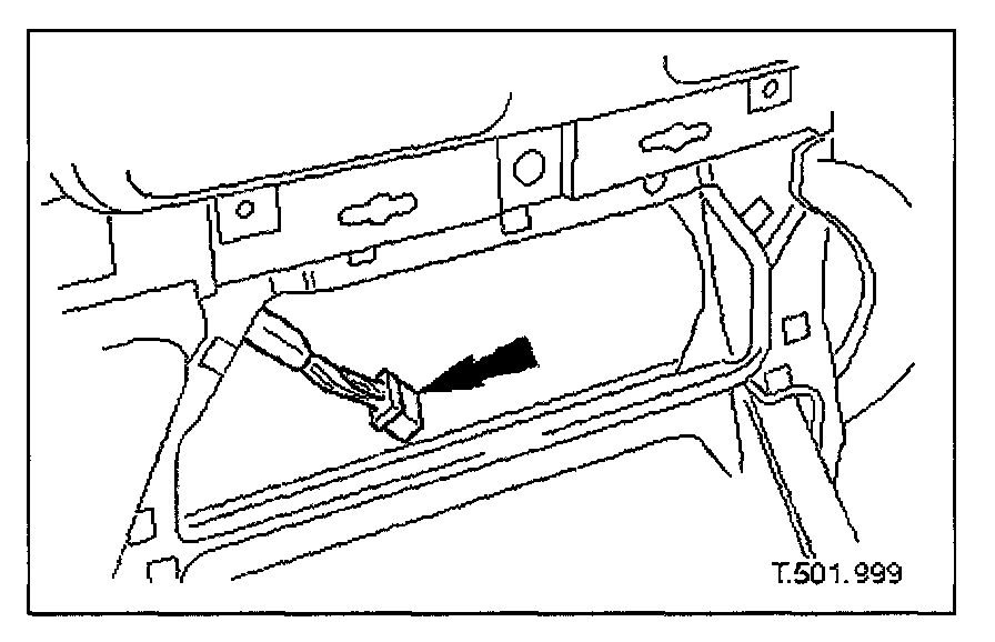 4. Disconnect air conditioning control module flying lead connector (blue) from harness connector located at side of 'J' gate.