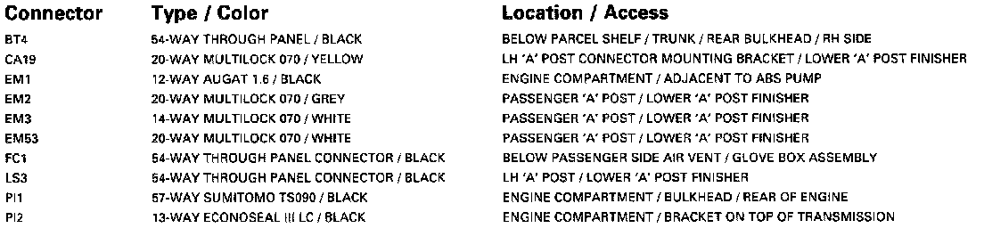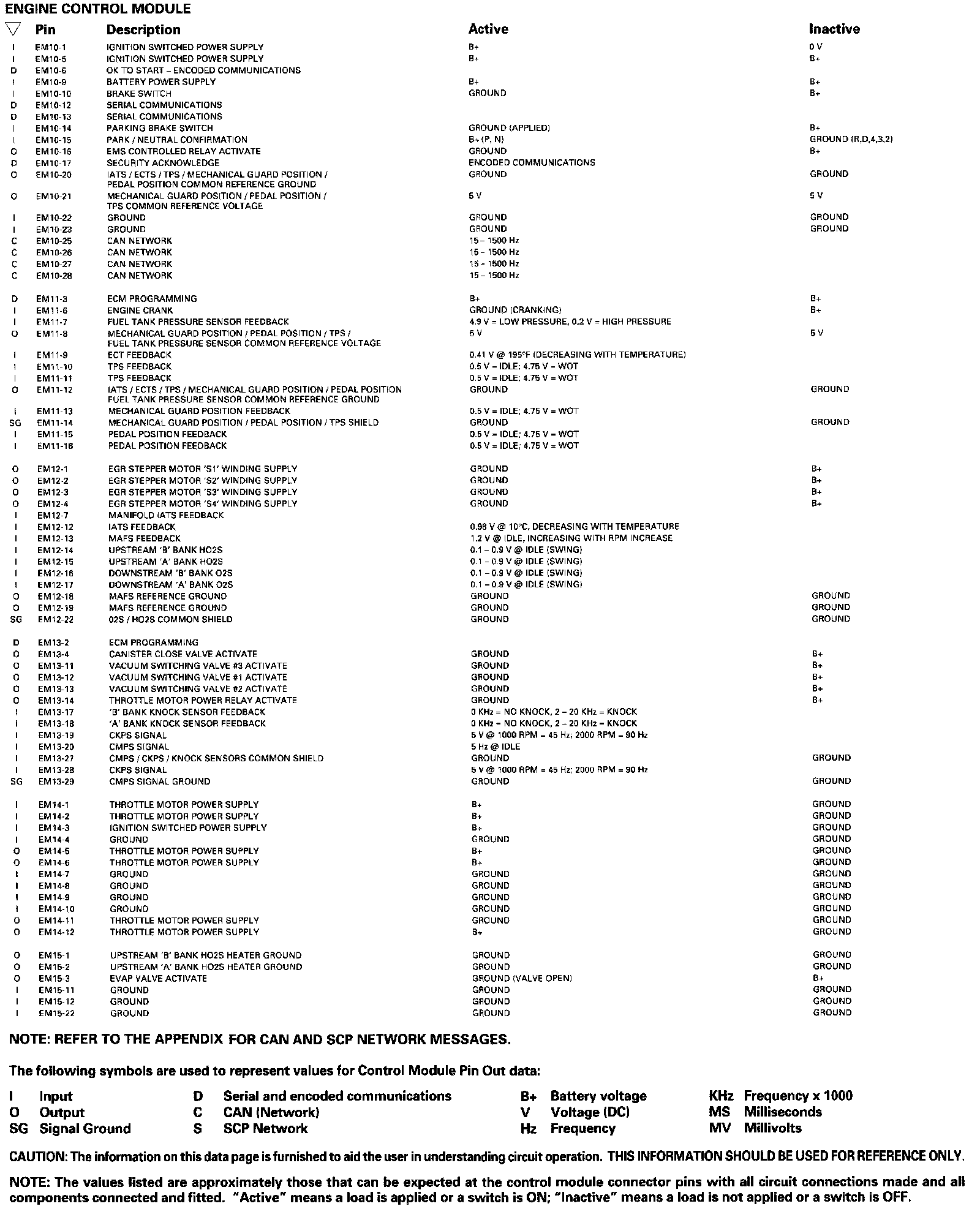 Control Module Pin Out Informations