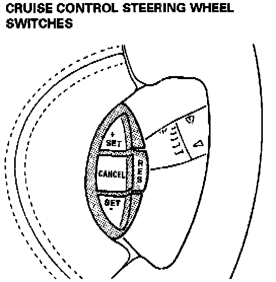 Vehicle Cruise ControlThe ECM operates the vehicle cruise control system, in all forward gears, in response to driver inputs through the master, SET+, SET-, CANCEL and RES switches.