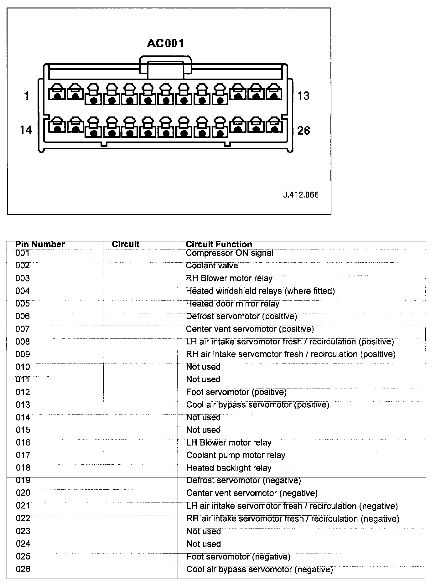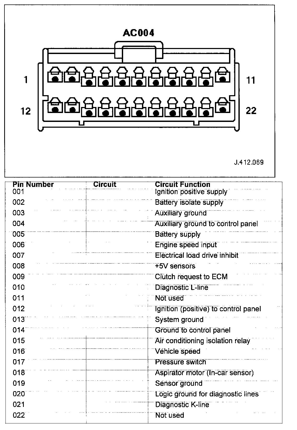 Connector Pin Identity Chart for AC001: