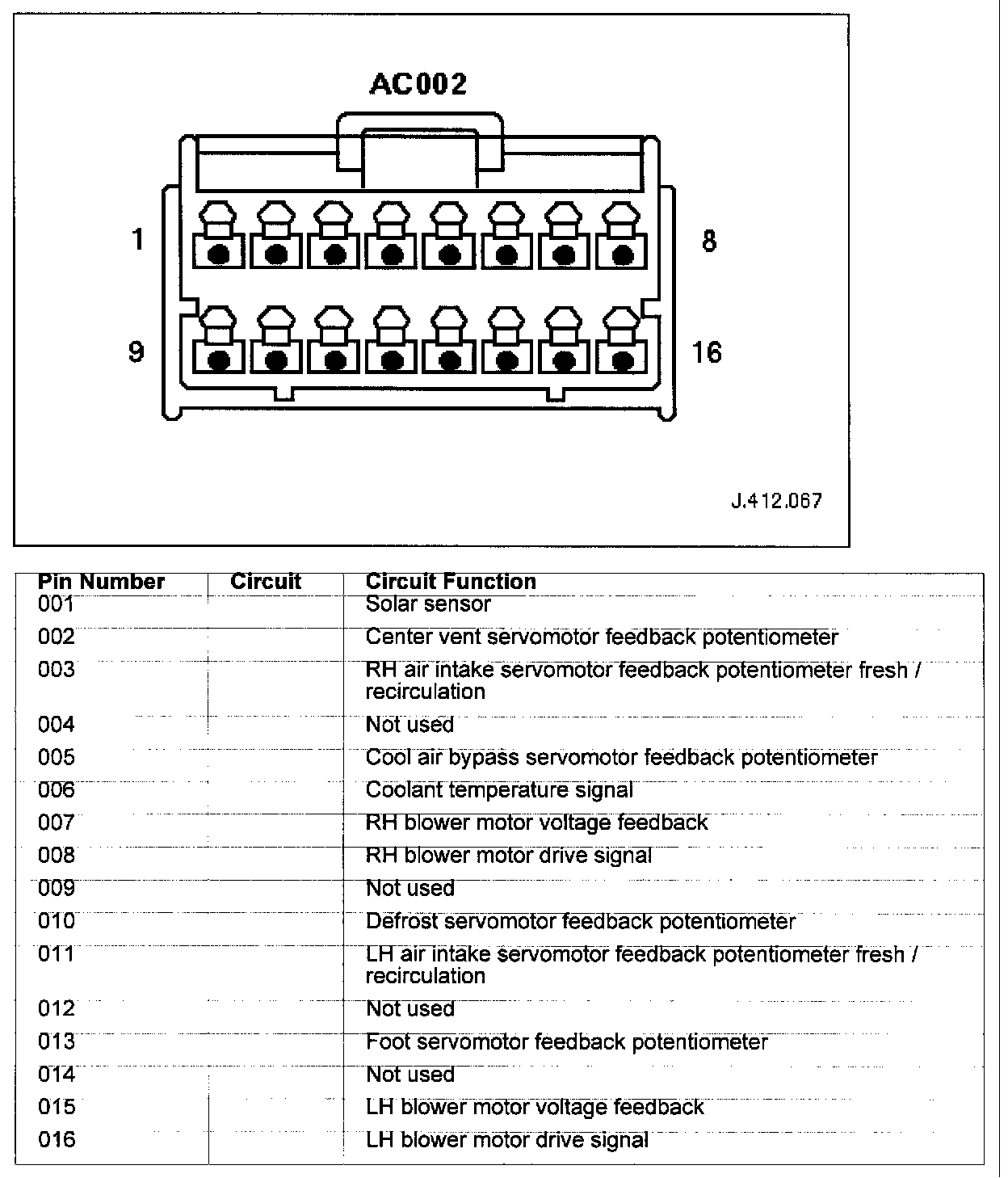Connector Pin Identity Chart for AC002: