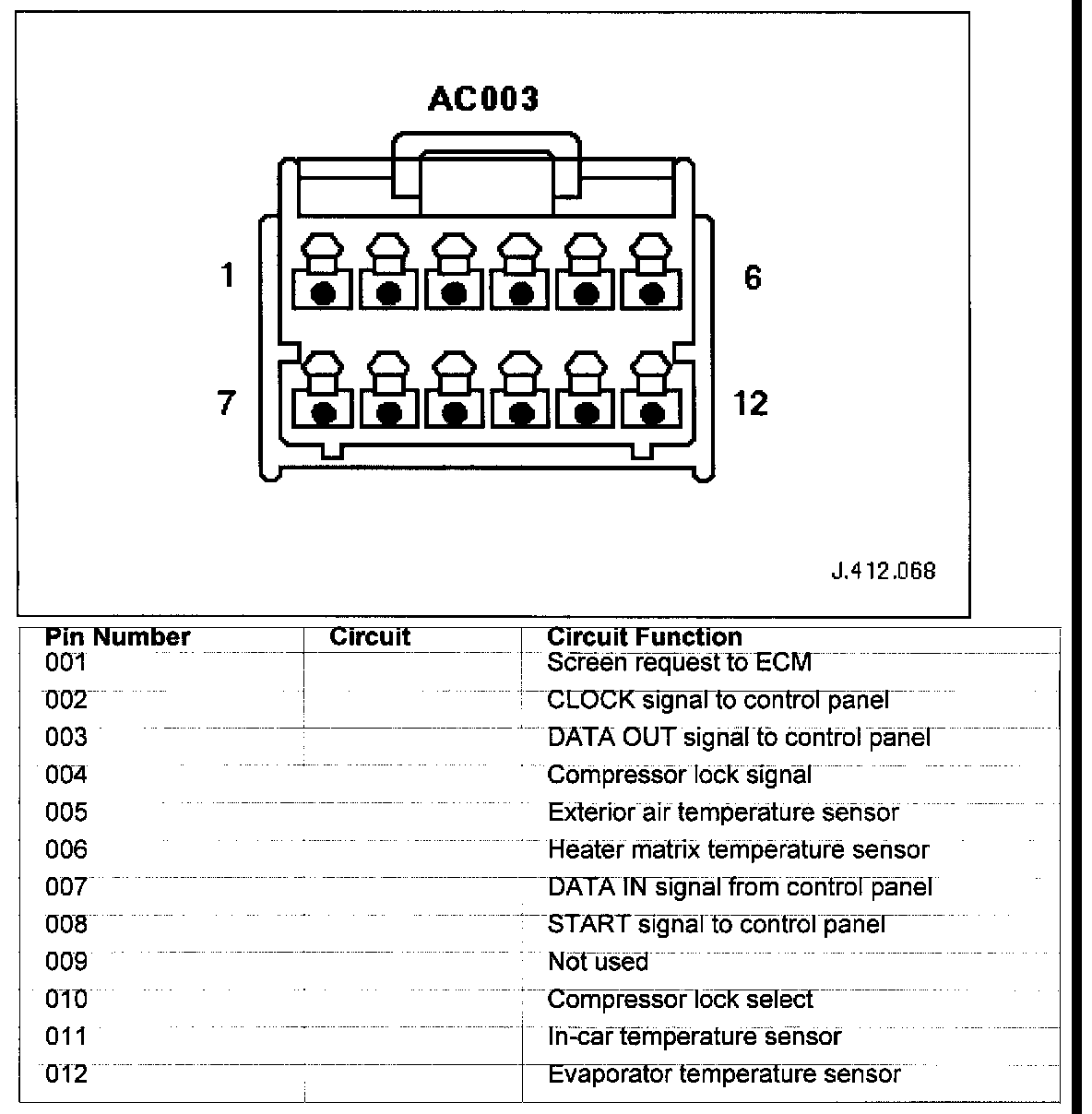 Connector Pin Identity Chart for AC003:
