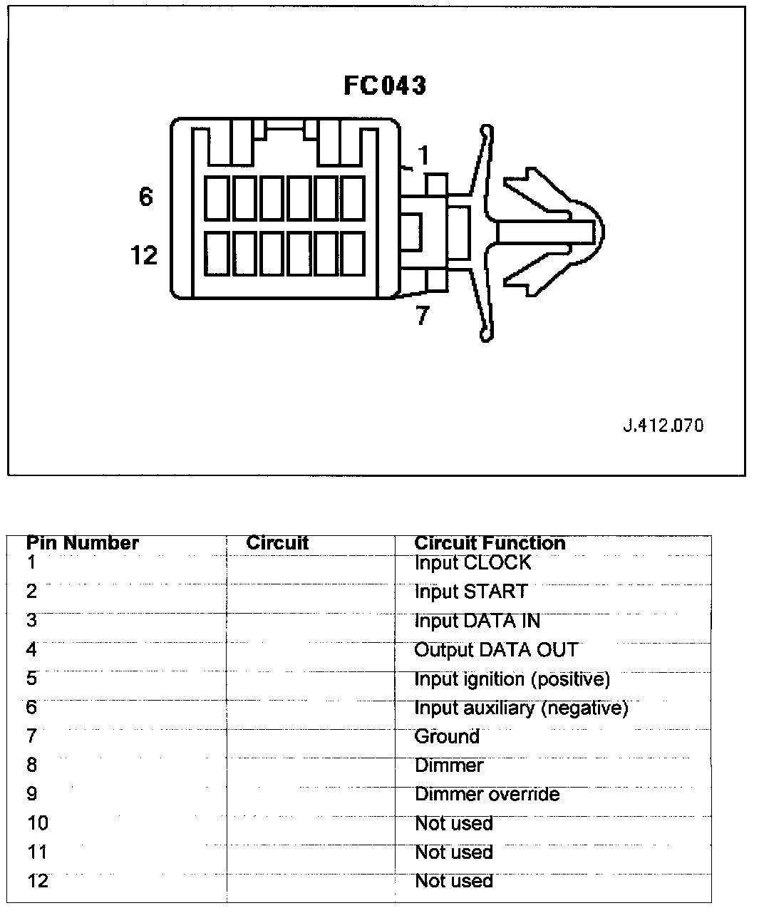 Connector Pin Identity Chart for FC043: