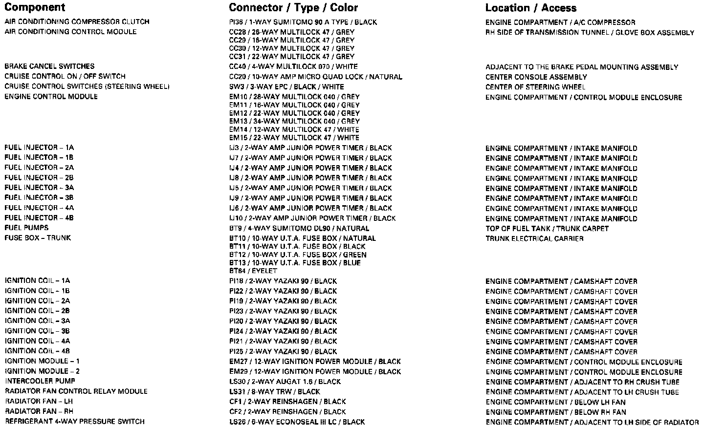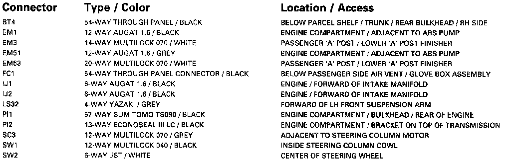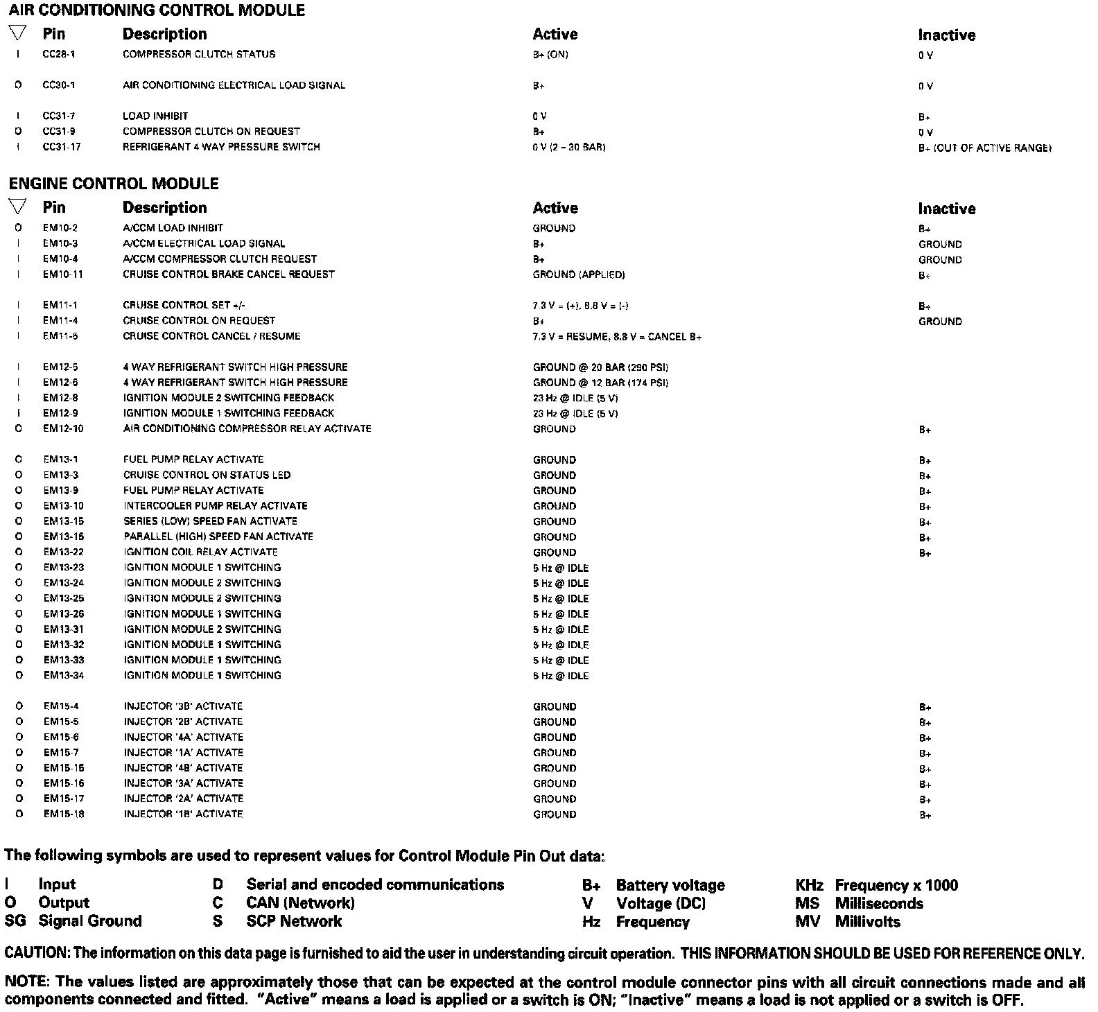 Control Module Pin Out Informations