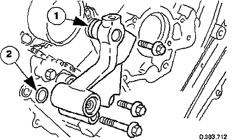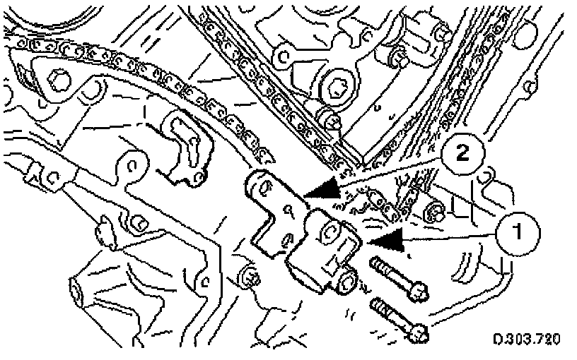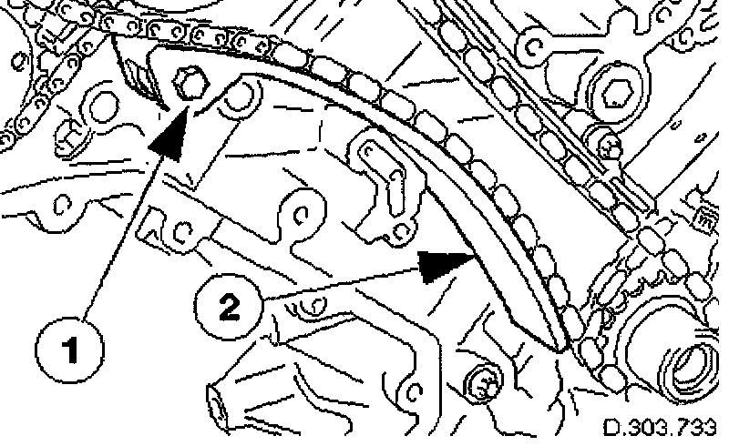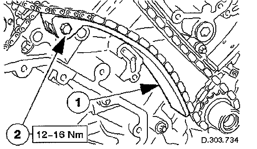 Position the tensioner blade to the cylinder block. Install the retaining/pivot bolt and tighten it to 12-16 Nm.