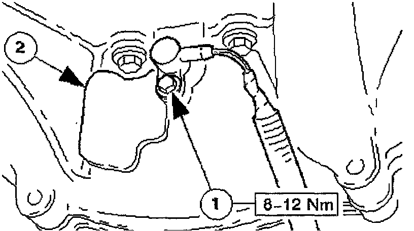 Install the sensor to the flywheel housing and install the securing bolt. Tighten to 8-12 Nm.