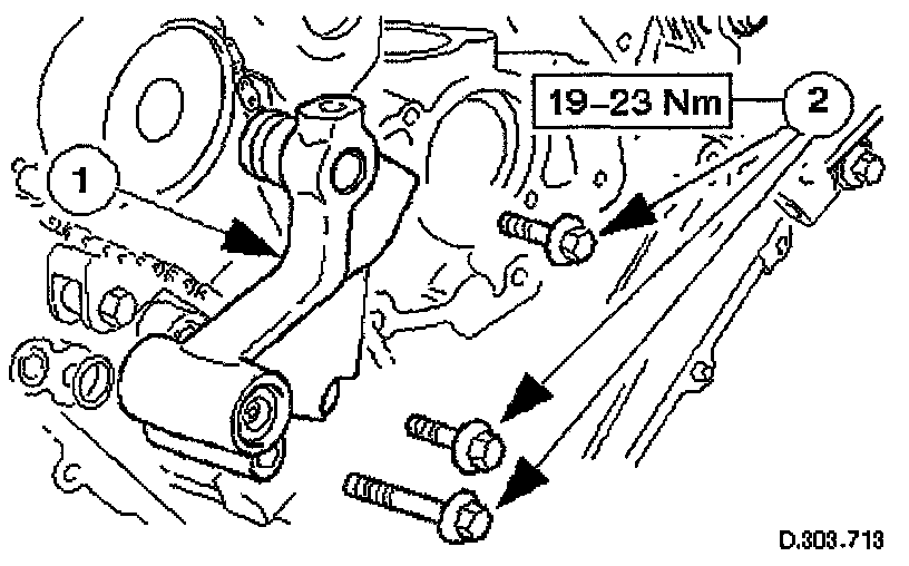 Install the three securing bolts. Tighten to 19-23 Nm.