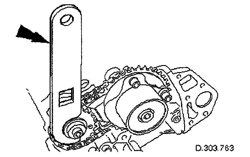 2. Install the chain tensioning tool 303-532 to the exhaust camshaft sprocket.