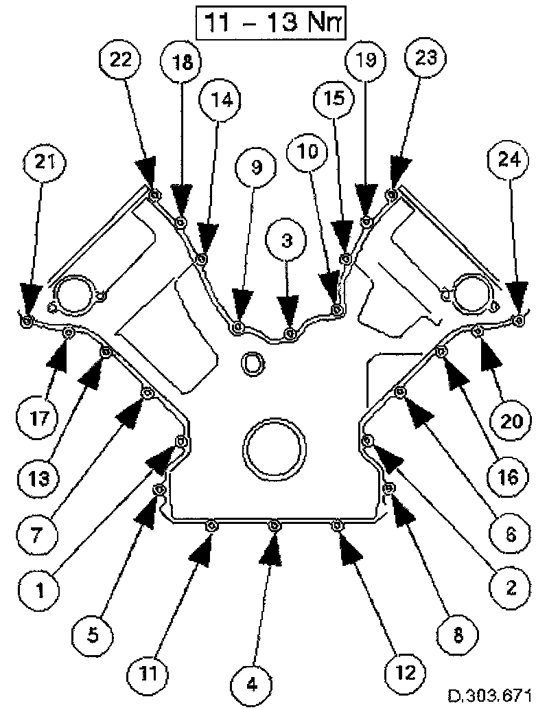 Sealant beads to be 3mm diameter and 12mm long. Cut the nozzle of the sealant tube to produce a 3 mm bead. (Install and tighten the securing bolts within twenty minutes of sealant application).