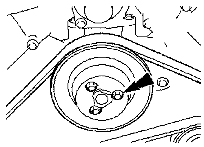 22. Tighten the three screws, which secure the water pump pulley, to 10-14 Nm.