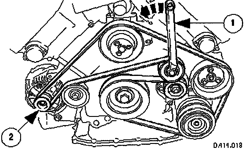 Use a spanner e.g. Churchill JD-230 or Snap On XDHM 1415, on the center bolt of the belt tensioner idler pulley, to turn the adjuster assembly to the left against spring tension. Whilst holding the tensioner against spring tension, remove the drive belt from the generator pulley. Release the tensioner slowly and remove the spanner. Disconnect the belt from the other pulleys and remove it.