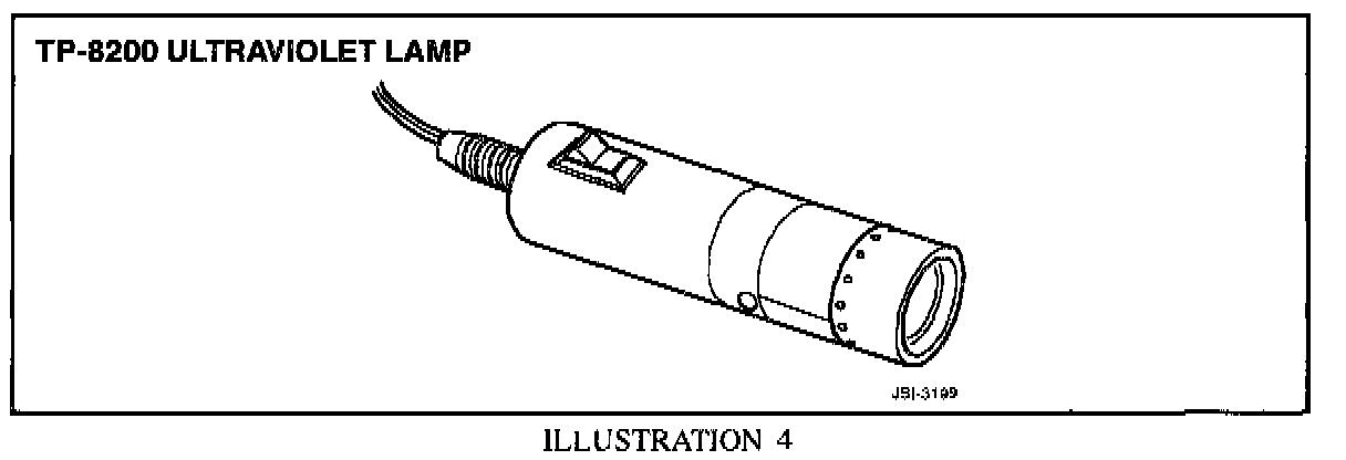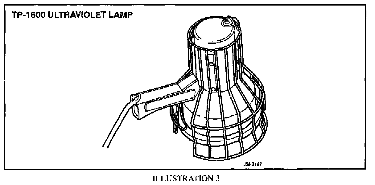 ^ When operating the TP-1600 110 VAC lamp (Illustration 3), 3 to 5 minutes must be allowed for warm-up.
