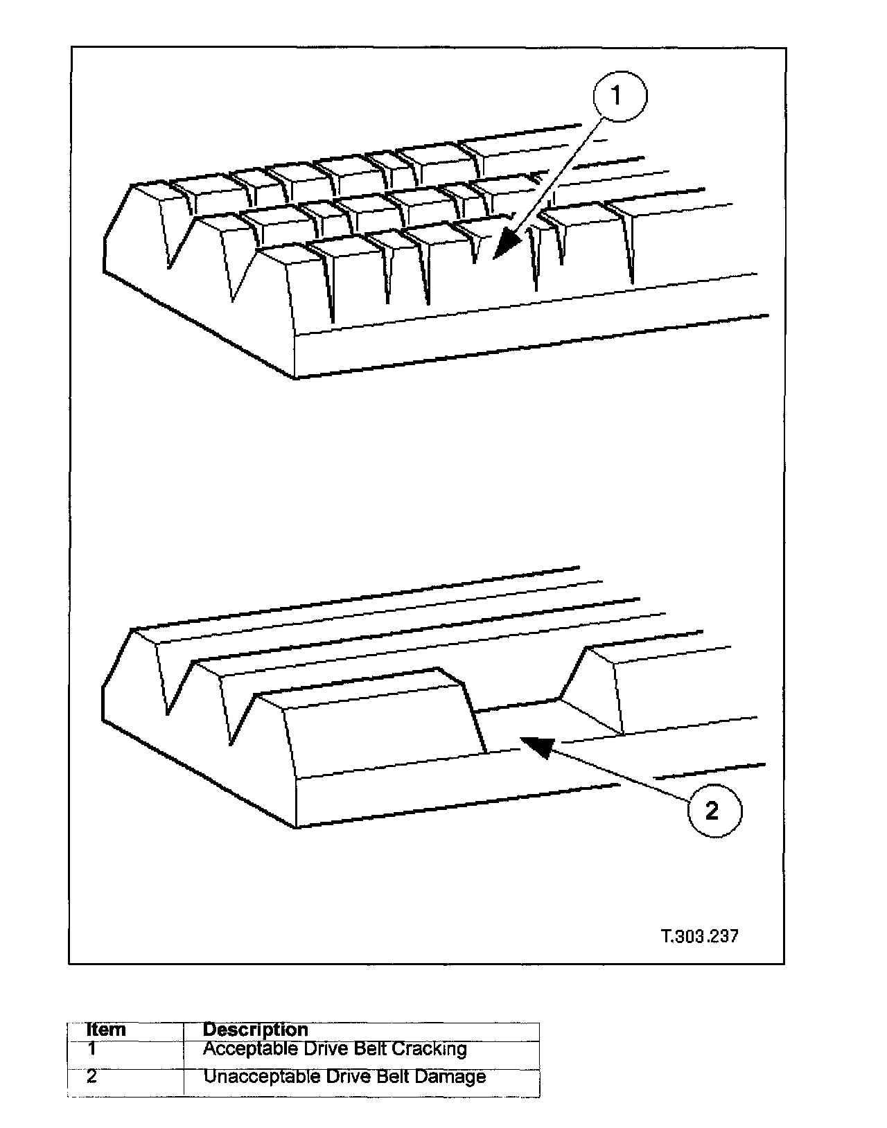 Drive BeltThe drive belt should be inspected at every routine service for excessive wear and damage. A drive belt, which displays symptoms of cracking, may be perfectly fit for further service.
