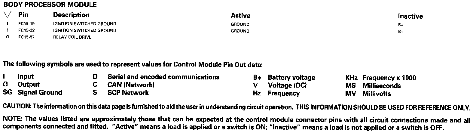 Control Module Pin Out Information