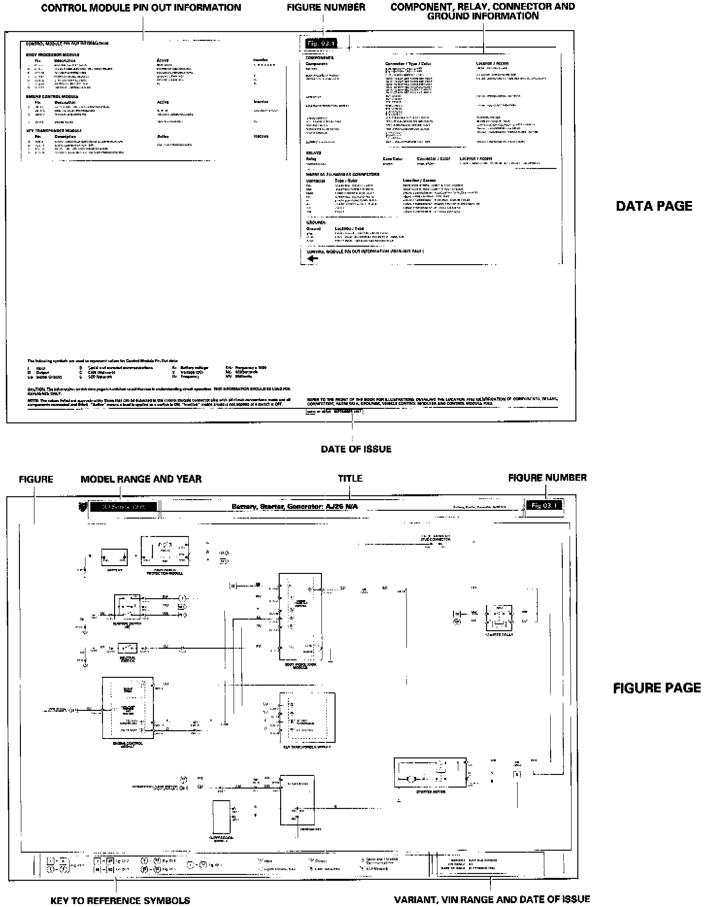 The Data images include information to assist the user in identifying and locating components, connectors and grounds.