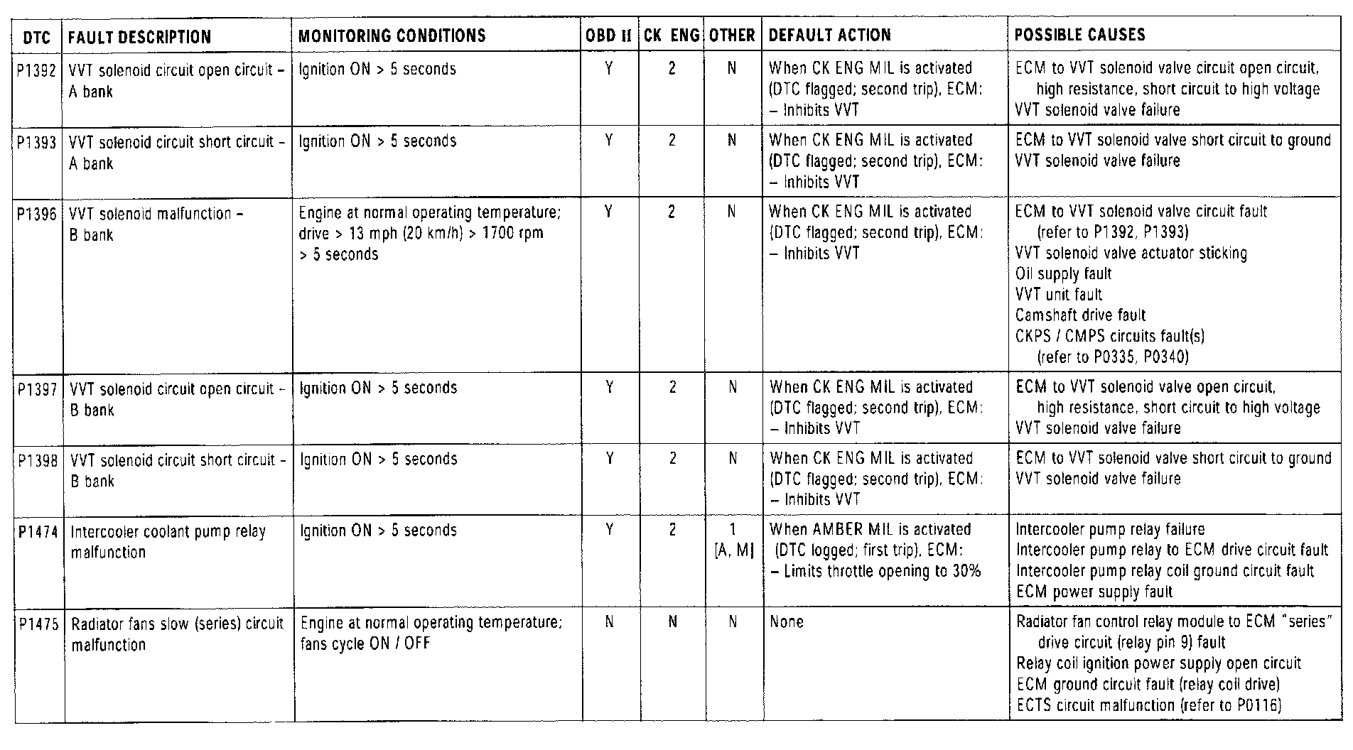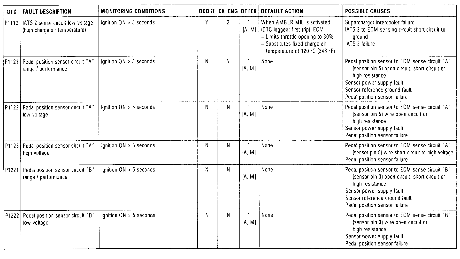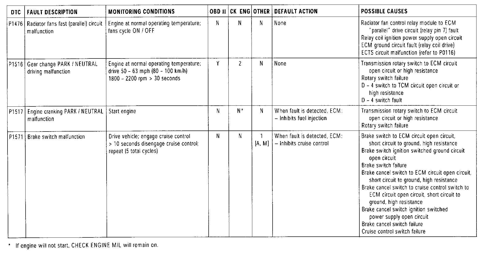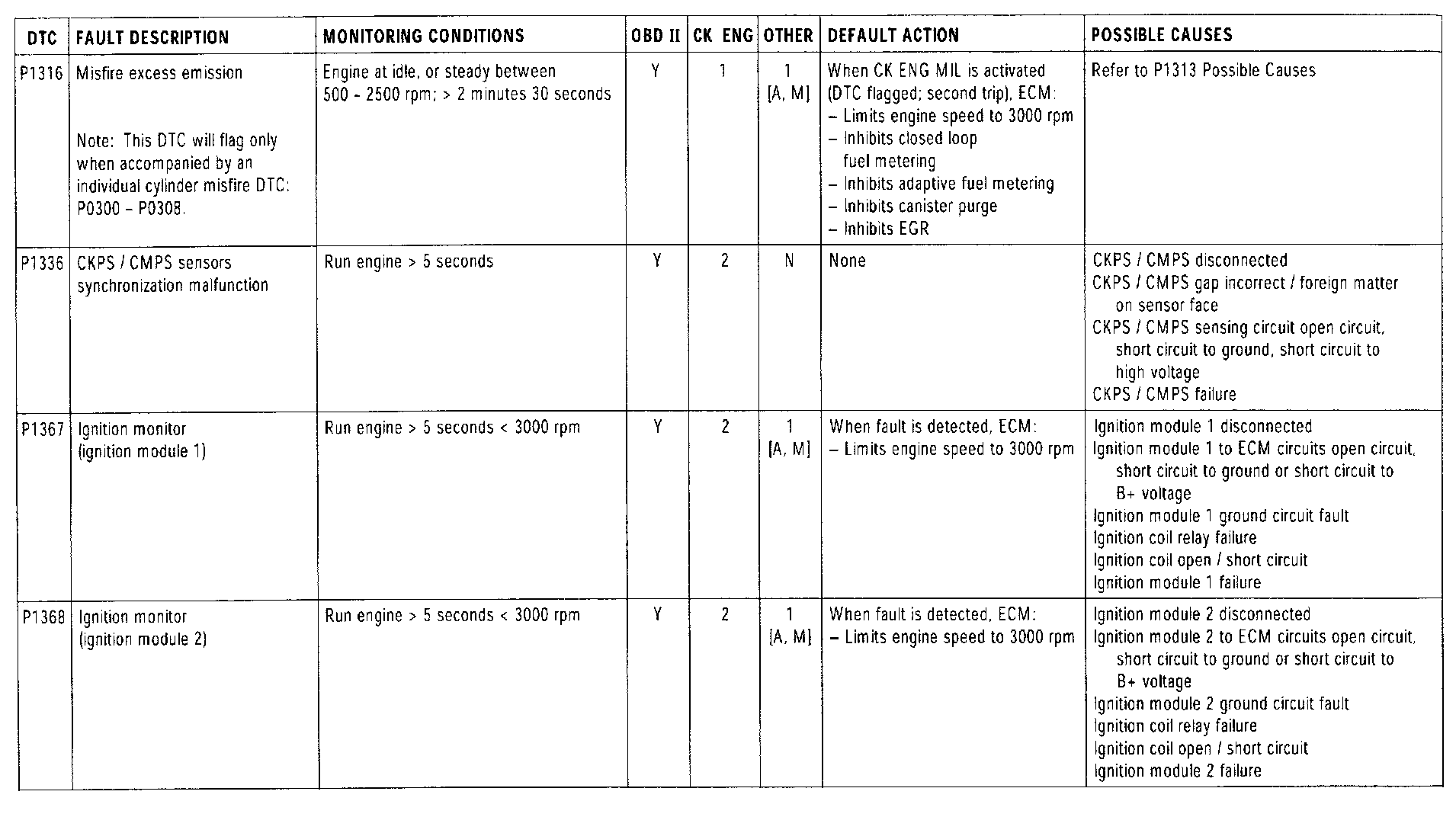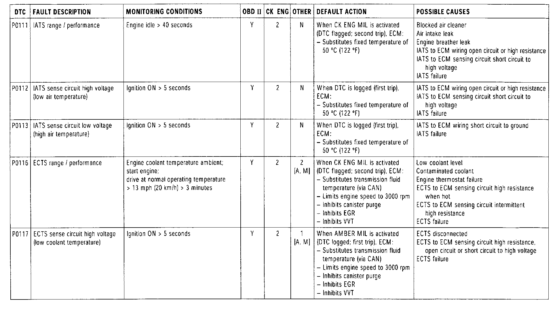 NOTE: For additional "P" Codes not listed in this summary, refer to the Transmission Control DTC Summary. For code P0335, refer to the climate control system trouble code summary.