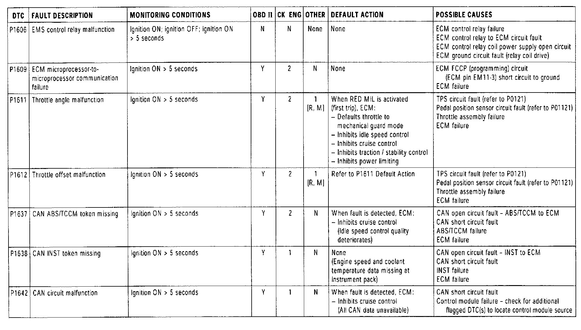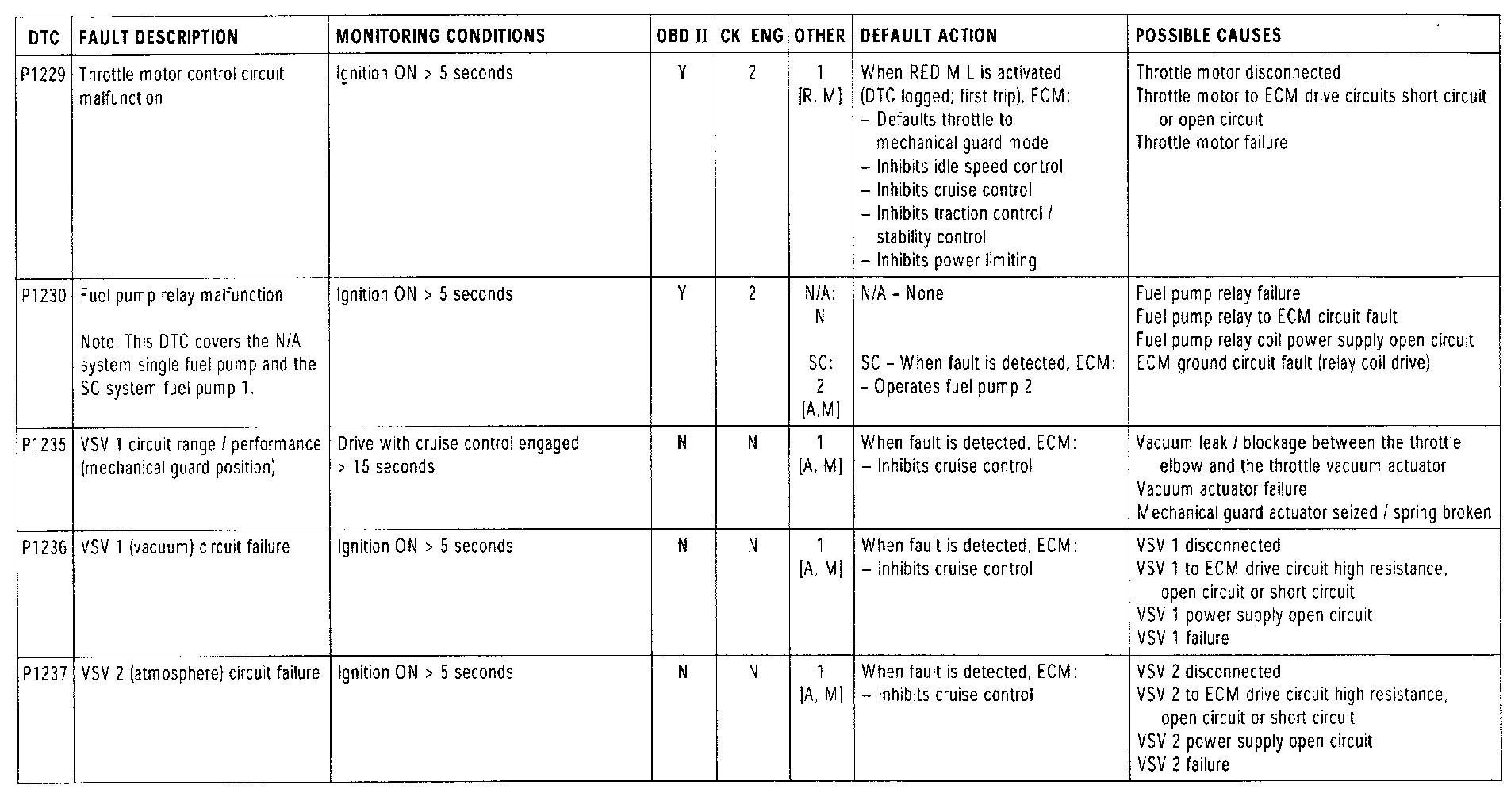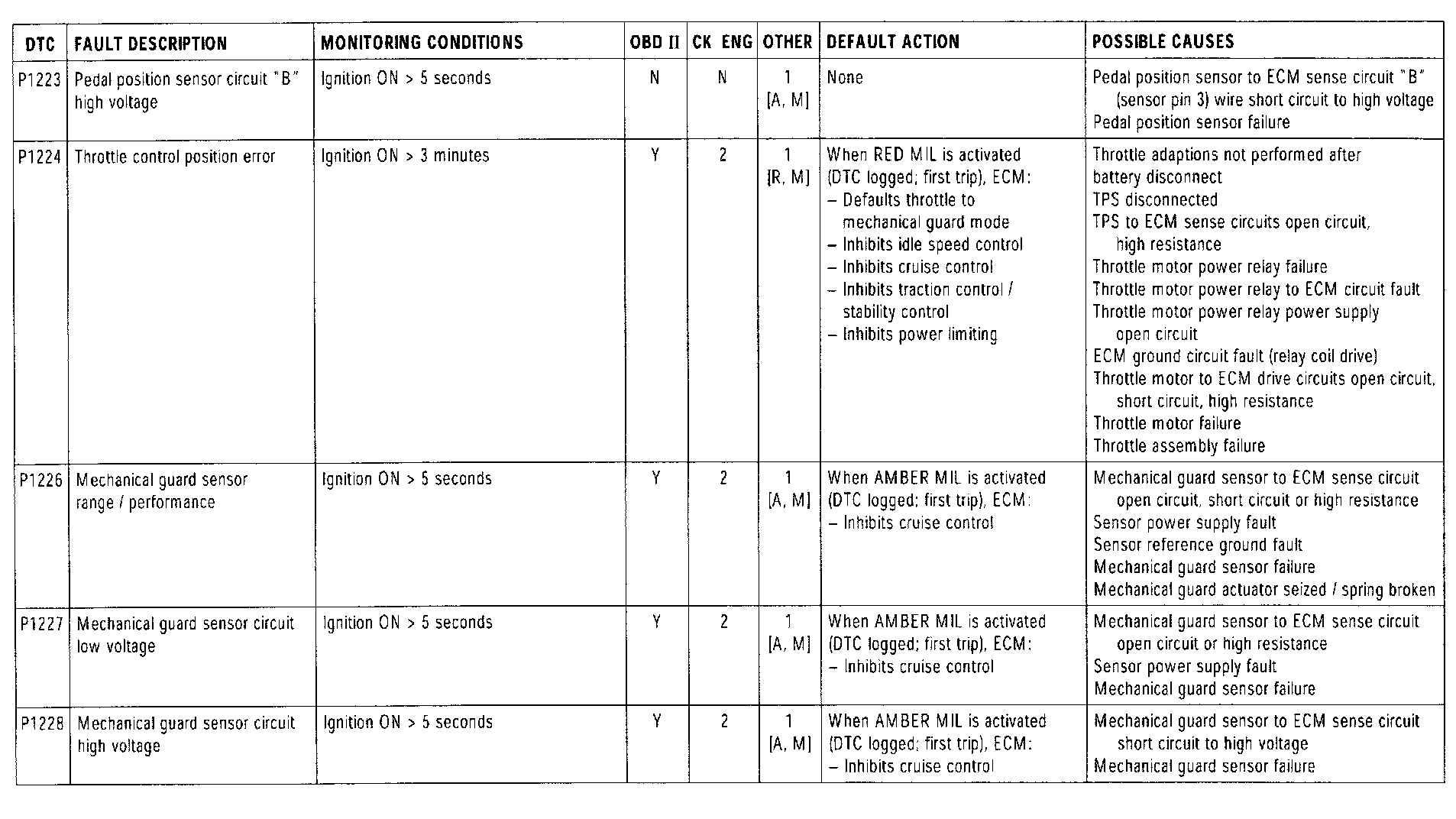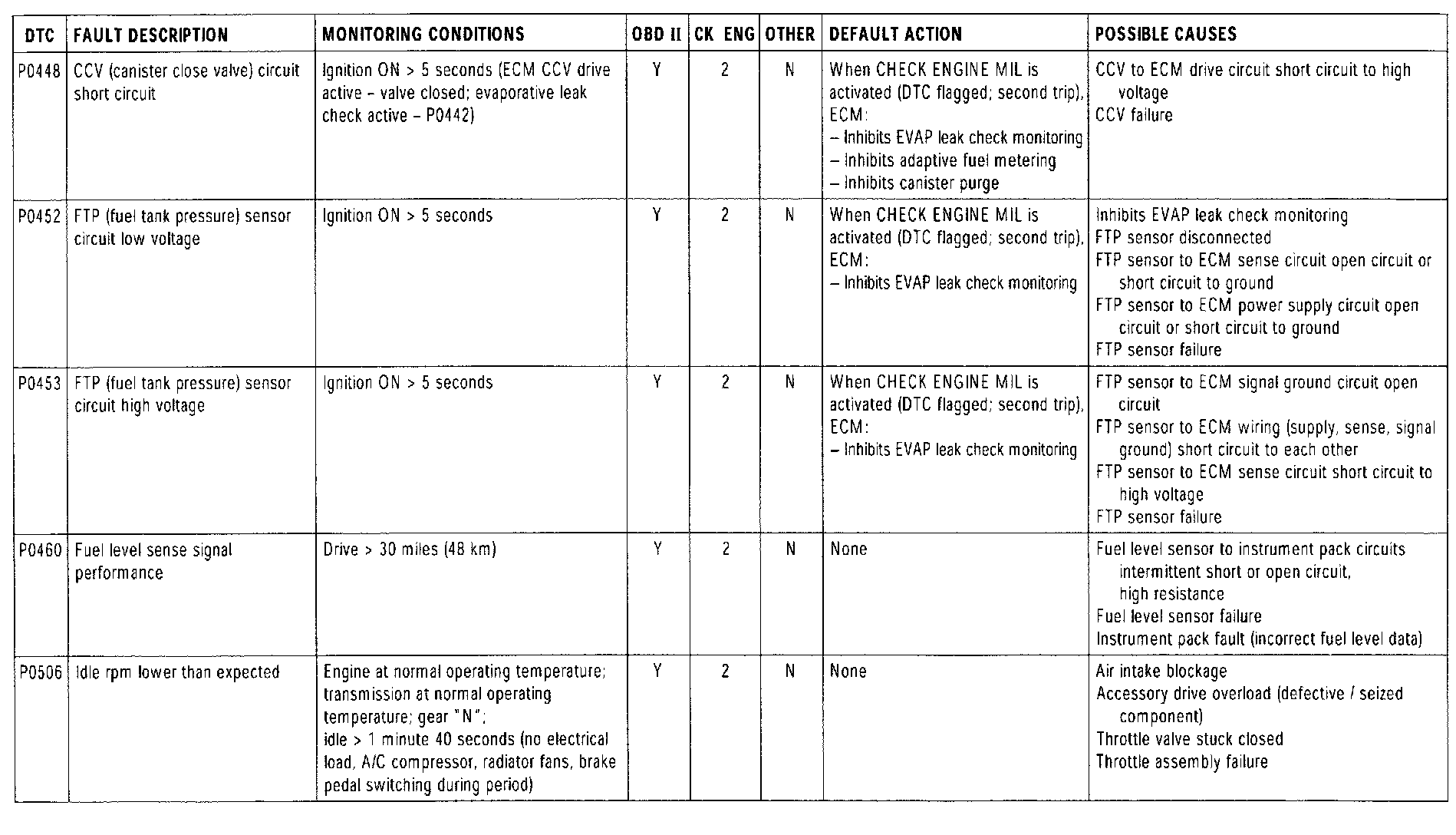 NOTE: For additional "P" Codes not listed in this summary, refer to the Transmission Control DTC Summary. For code P0335, refer to the climate control system trouble code summary.