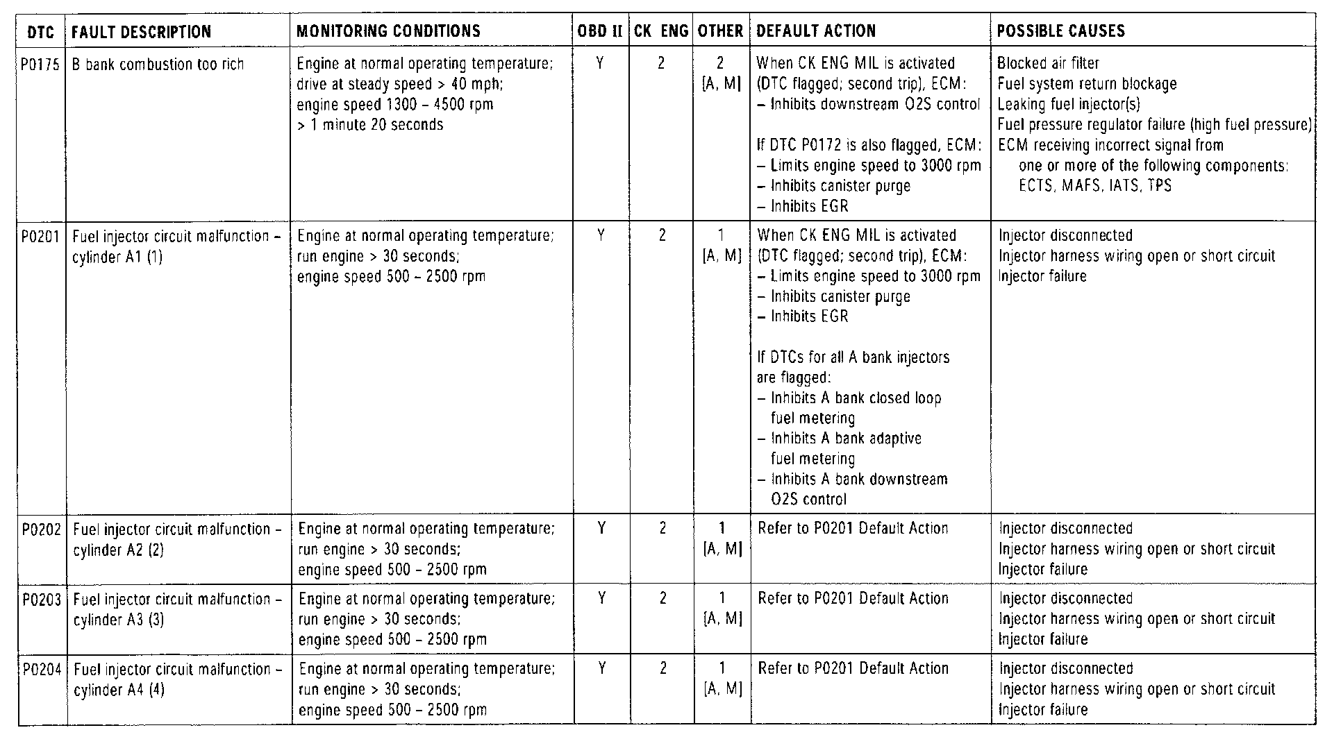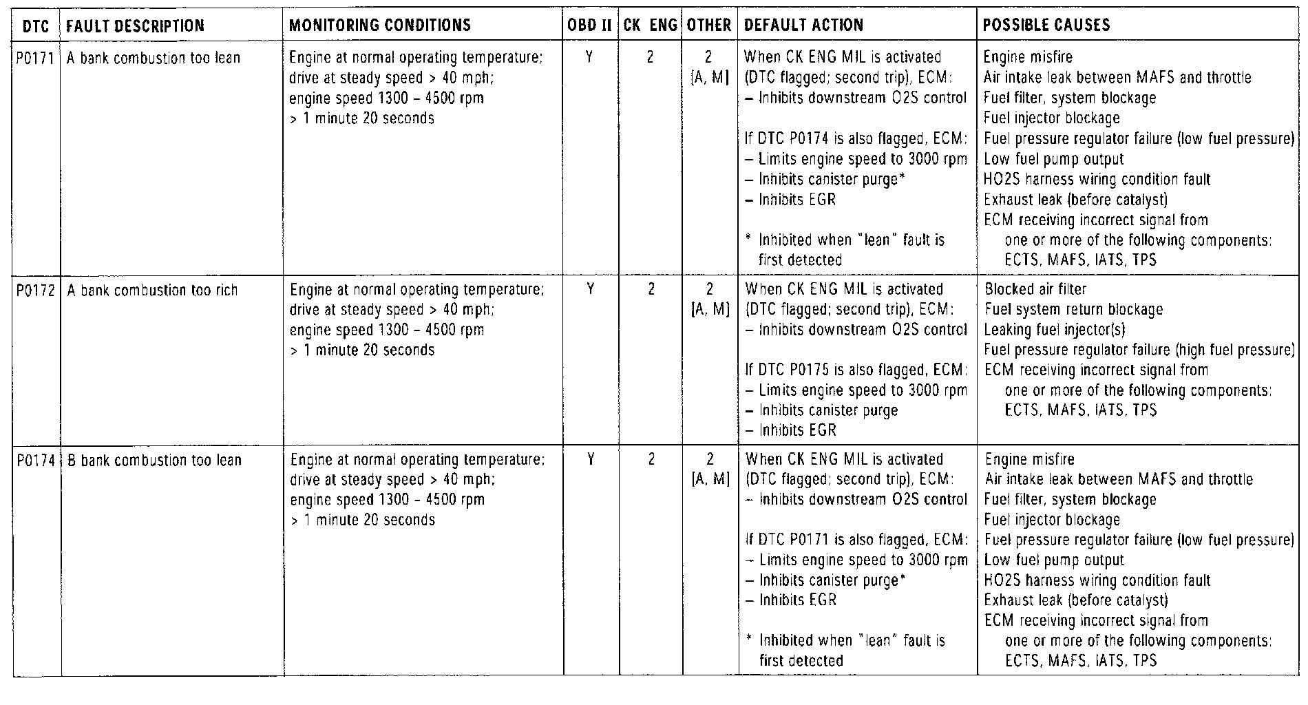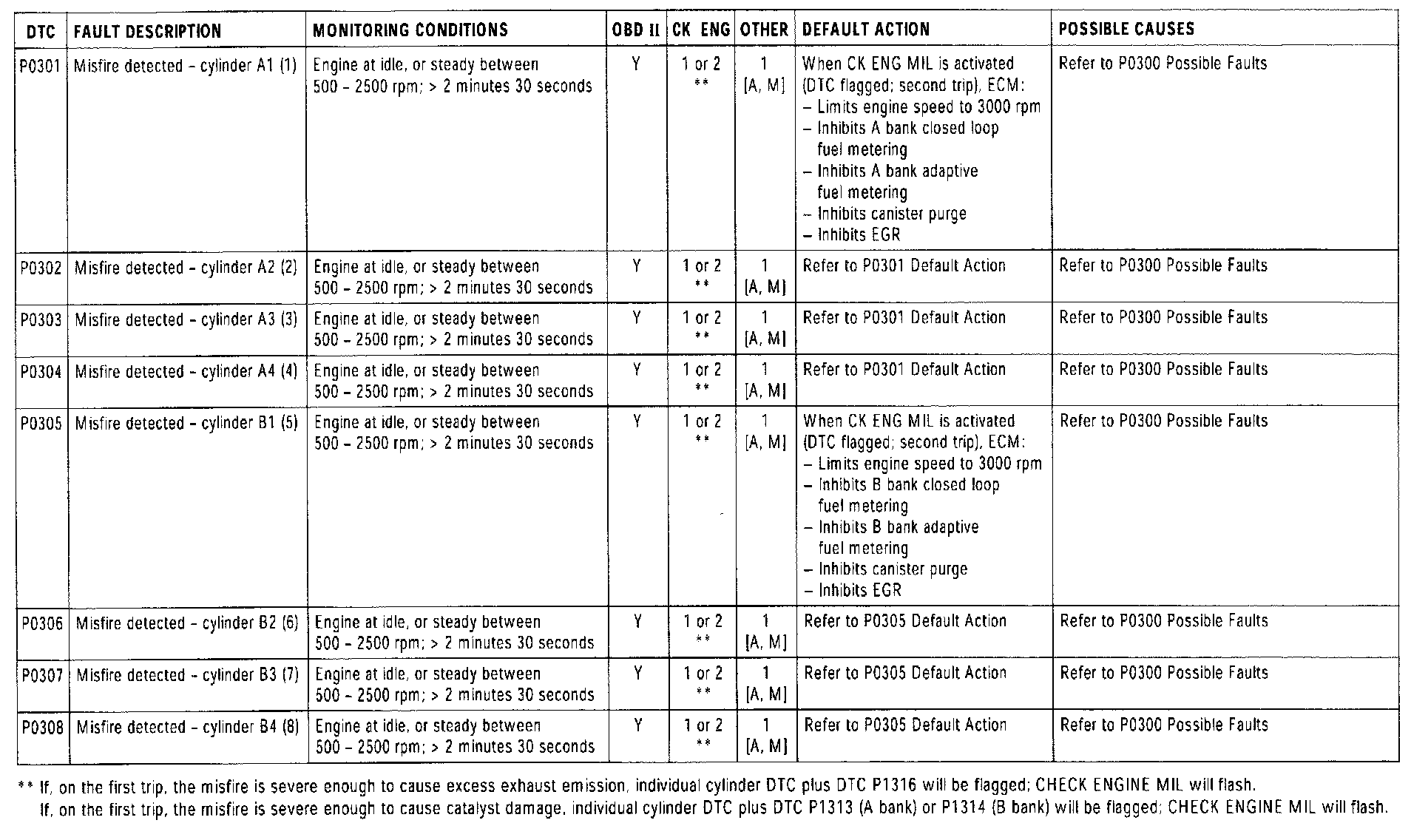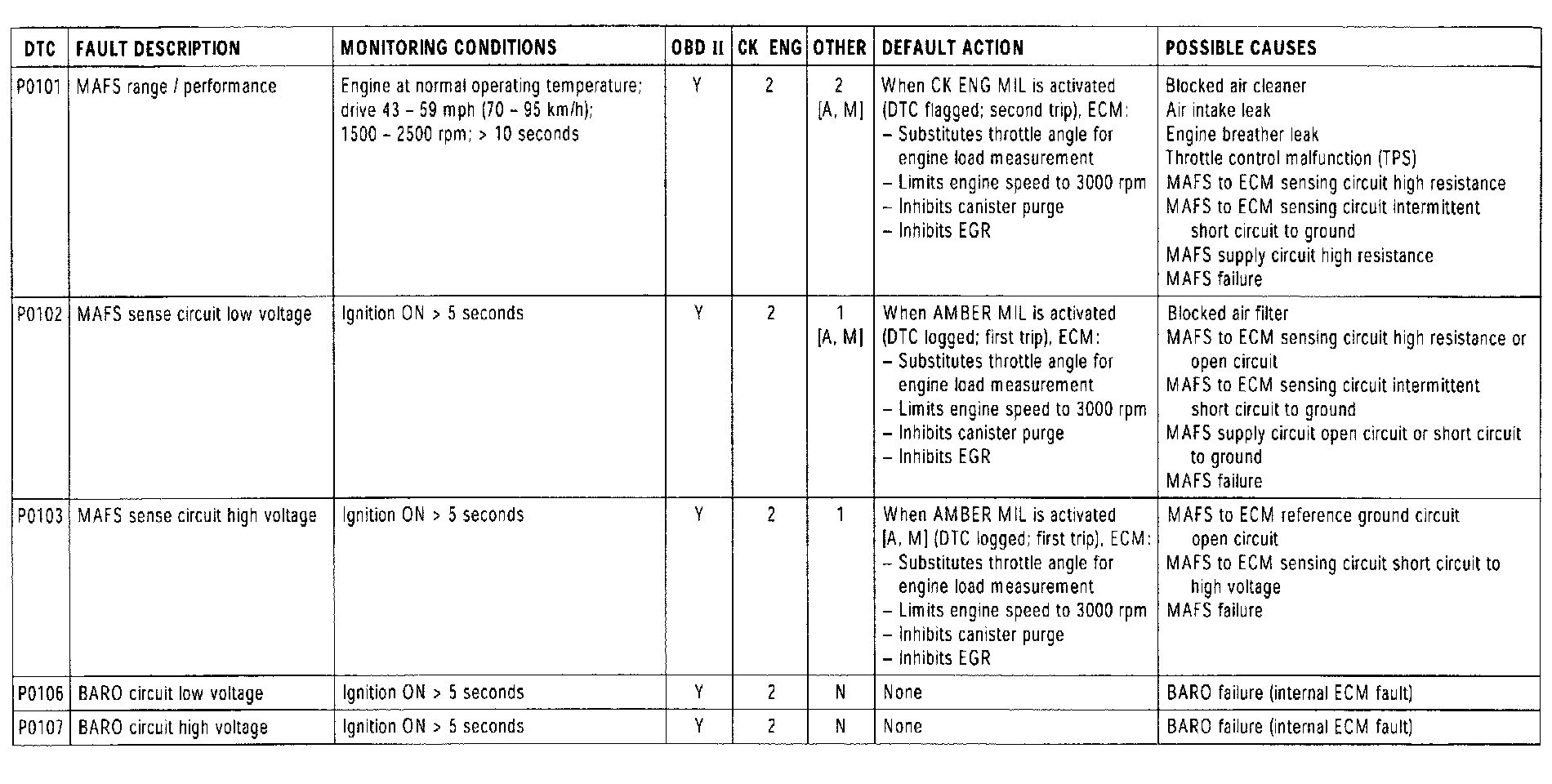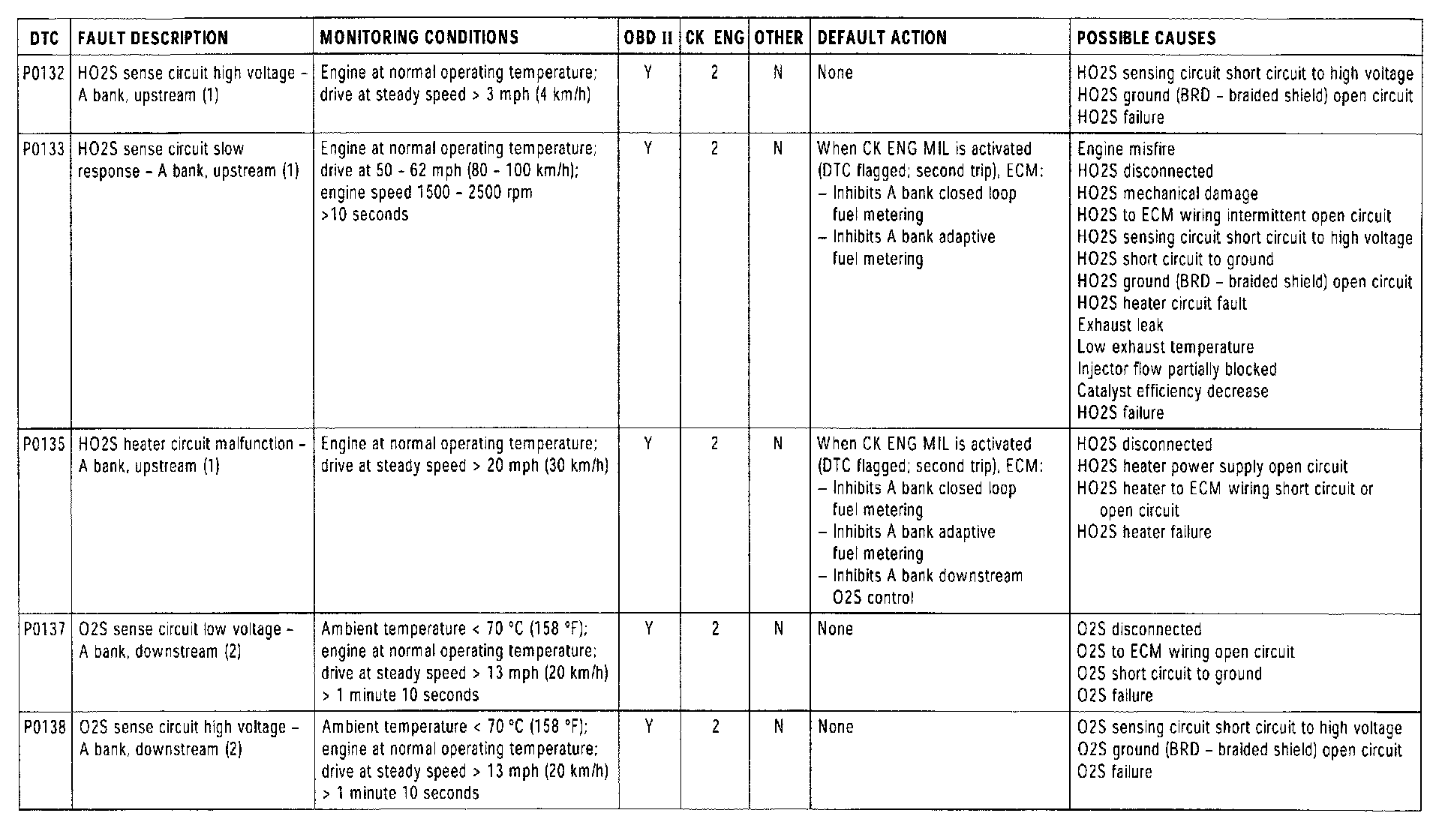 NOTE: For additional "P" Codes not listed in this summary, refer to the Transmission Control DTC Summary. For code P0335, refer to the climate control system trouble code summary.