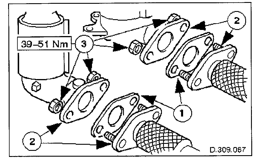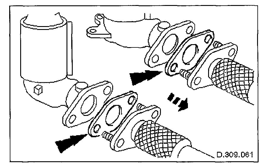 1. Fit a new gasket to the manifold mating flange on the down pipe.