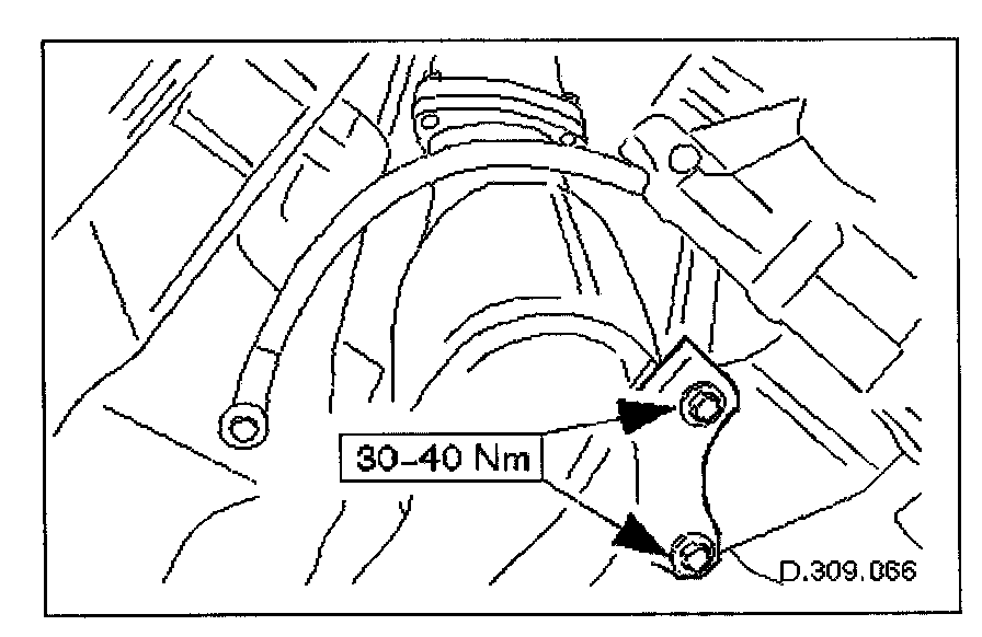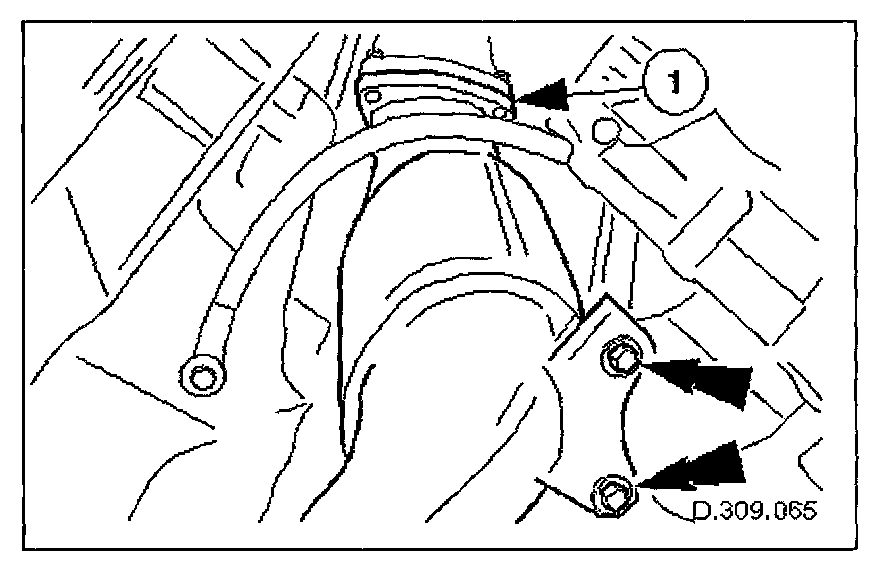 Fit, but do not fully tighten, the mounting bracket securing bolts. (Leave loose until the nuts securing the downpipe to the exhaust manifold are fitted.)