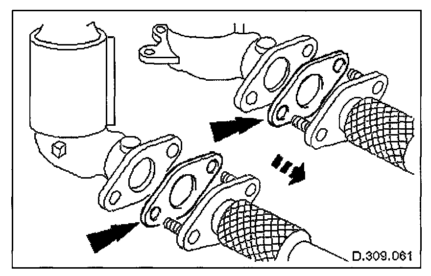 1. Fit a new gasket to the manifold mating flange on the downpipe.