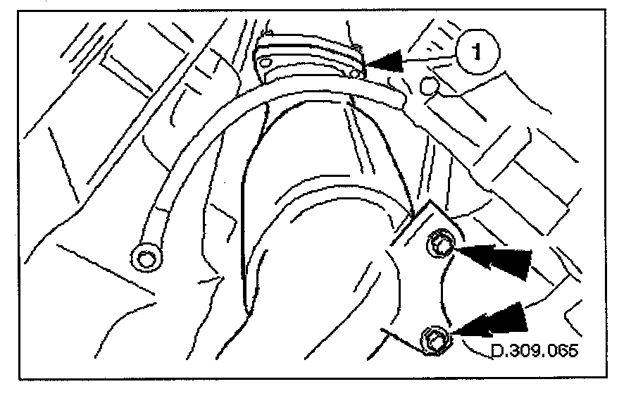 Fit, but do not fully tighten, the mounting bracket securing bolts. (Leave loose until the nuts securing the downpipe to the exhaust manifold are fitted.)