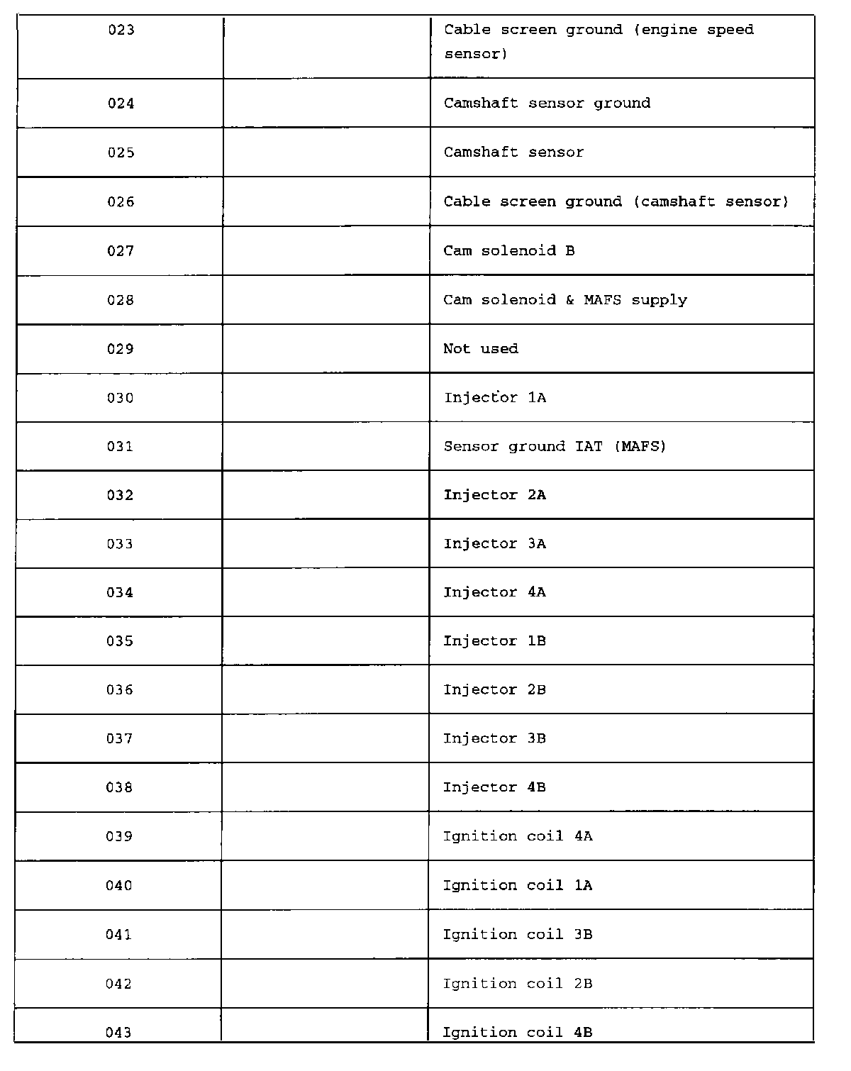 Pin Number 023 - 043: