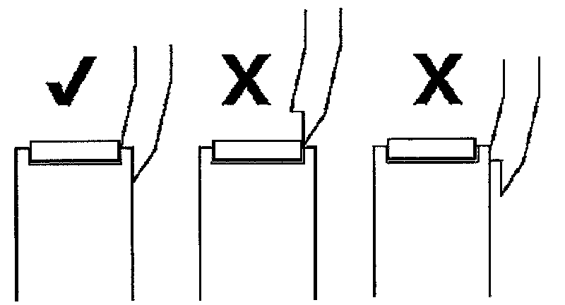 12. Position the fingers on to the outer edges of the tappet. It is essential that the recessed step on each finger, locates on the edge of the tappet as indicated. The use of a mirror will help, as viewing access is restricted.