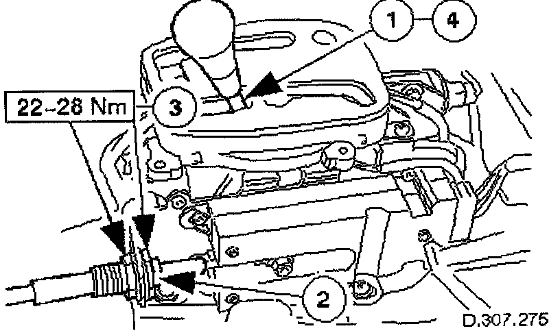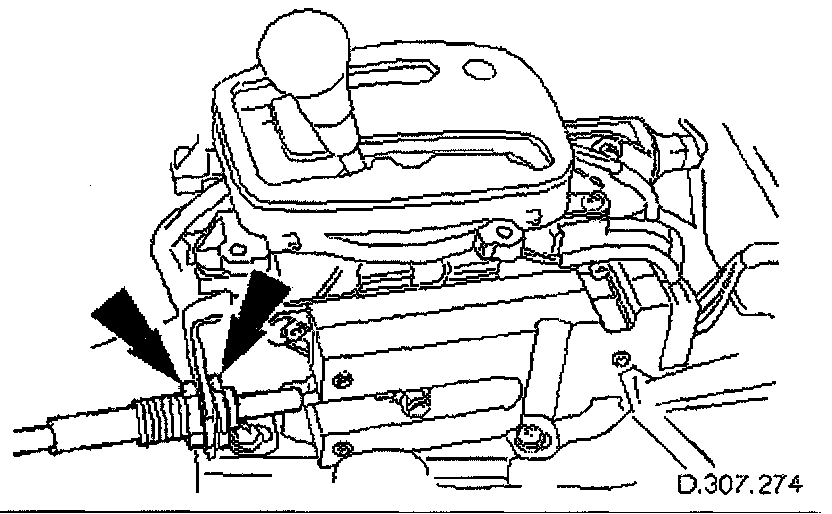 Adjust the nuts to lock against the bracket without moving the set position of either the gear selector lever or the selector lever on the transmission case.