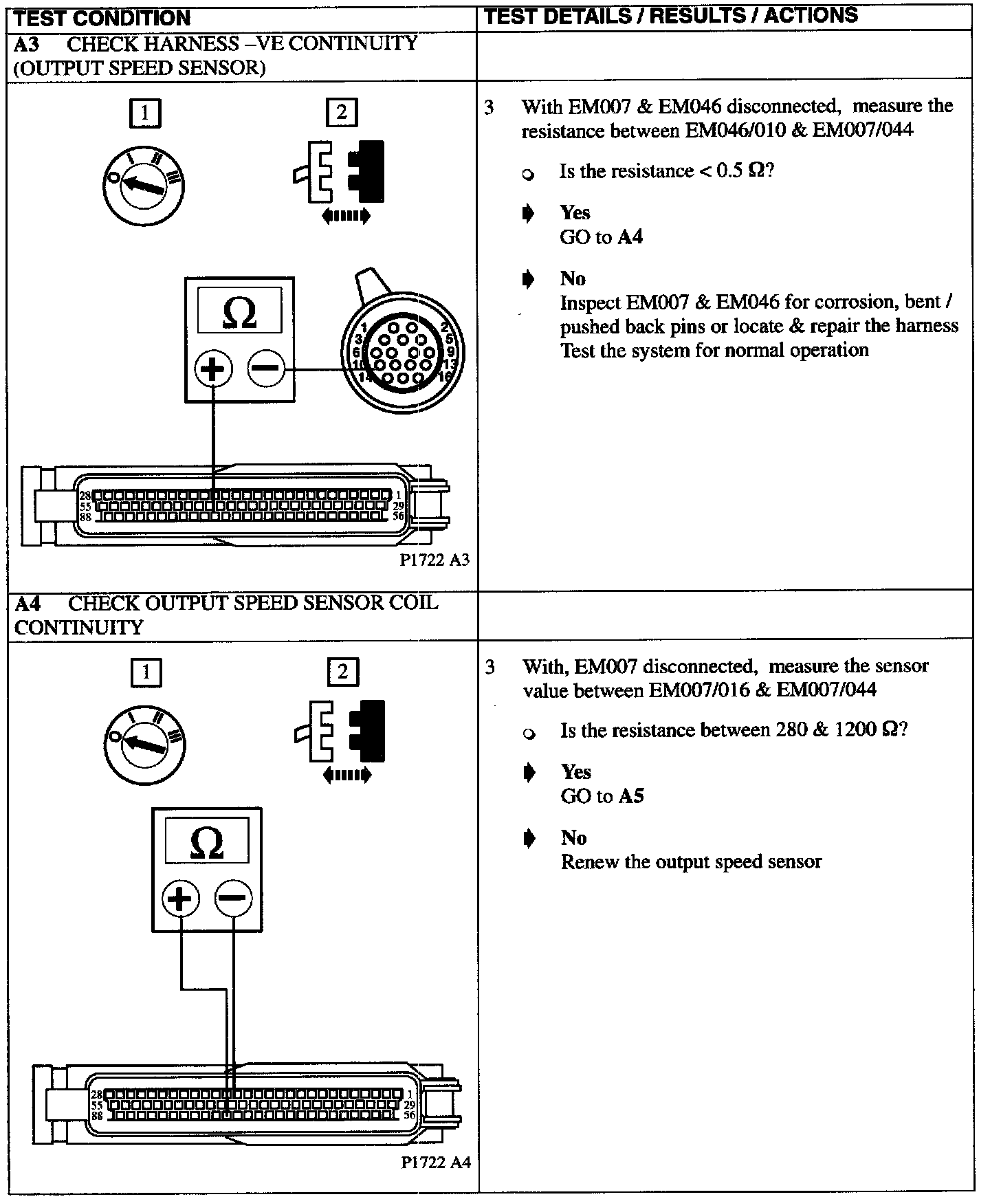 Pinpoint Test For DTC P1722