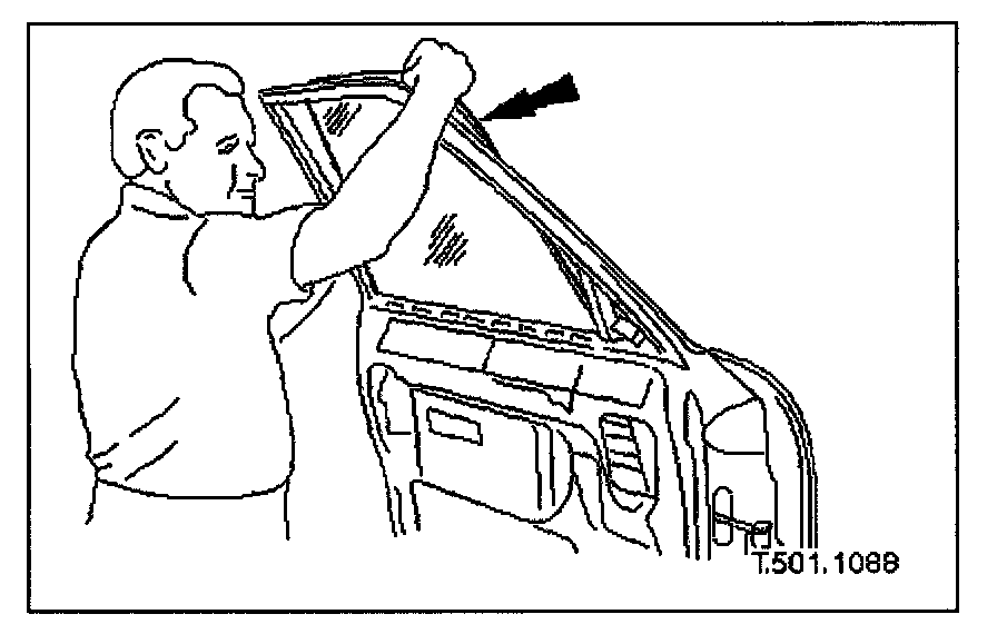 13. Withdraw glass upwards through aperture and out via outboard side of frame.