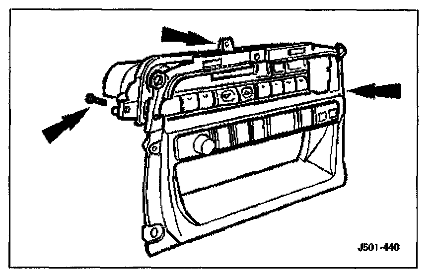 Slacken and remove the three air conditioning control module securing screws and remove the module.