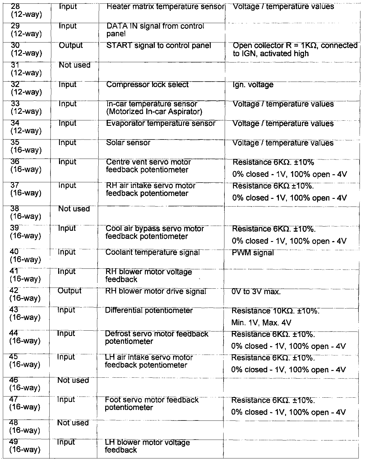 Pin # 28 (12-Way) - 49 (16-Way):