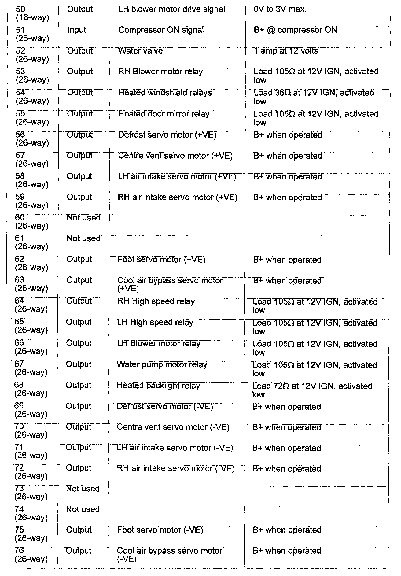 Pin # 50 (16-Way) - 76 (26-way):
